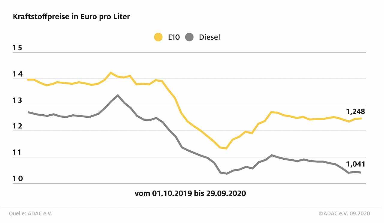 Diesel geht demnach um 0,2 Cent zurück, wodurch ein Liter im Bundesschnitt 1,041 Euro kostet. Dadurch bleibt auch die Preisdifferenz zwischen den beiden Sorten ähnlich groß.