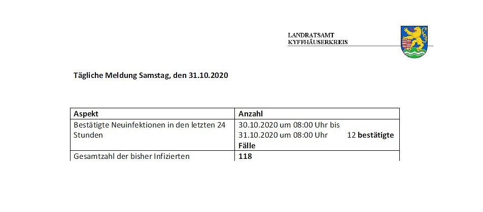 Vorläufig keine Allgemeinverfügung im Landkreis. Hier die tägliche Corona-Meldung aus dem Landratsamt Kyffhäuserkreis...