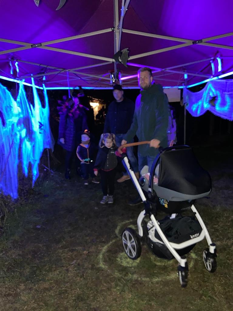 Pünktlich mit dem Einsetzen der Dämmerung öffnete der Eingang zur Sportanlage. Nachdem die ankommenden Gästen über die Infektionsschutzmaßnahmen belehrt und ihre Kontaktdaten aufgenommen wurden, konnte die Tour im Einbahnstraßensystem in kleinen Gruppen starten. Das schaurige Vergnügen endete für alle kleinen Teilnehmer mit einer Kleinigkeit für ihre Halloweenbeutel.