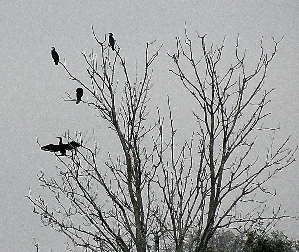 Nach erfolgreichen Fischfang sitzen die Komorane in den Bäumen um ihr Gefieder zu trocknen.