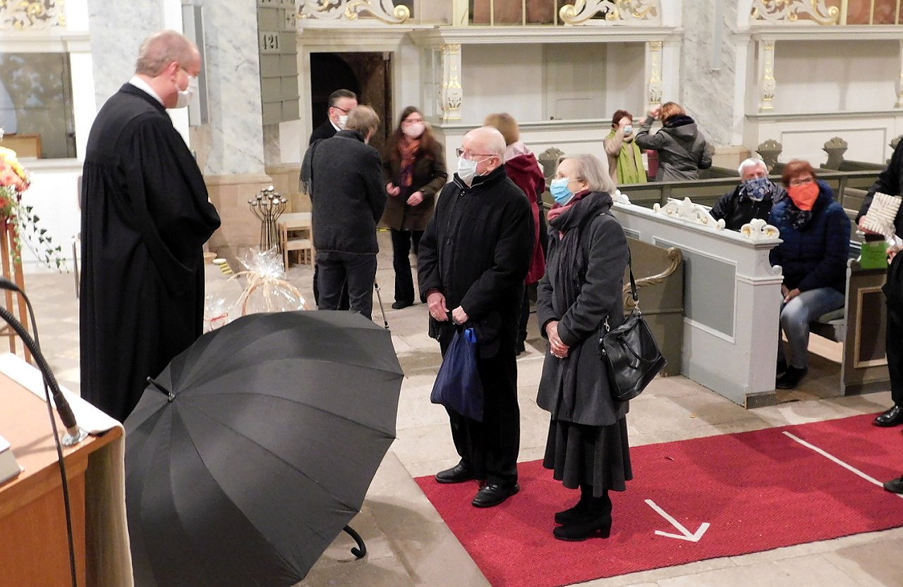 Im Anschluss, mit gebührendem Abstand, verabschiedeten sich die Gäste von Superintendent Kristóf Bálint. Wegen der besonderen Situation konnte es kein Zusammensein nach dem Gottesdienst geben, obwohl einiges geplant war.