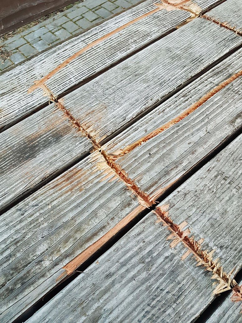 Jetzt erreichte der Vandalismus eine neue Qualität. Die sich vor der Wipperbrücke befindliche Sitzgruppe wurde recht heftig in Mitleidenschaft gezogen. Die Randalierer setzten Werkzeuge ein.