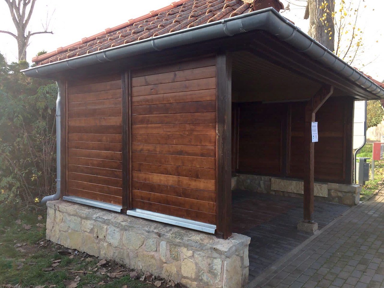 Mit Hilfe der ortsansässigen Zimmerei Frank Pinske wurde Maß genommen und das benötigte Material besorgt. Für vorbereitende Arbeiten wie Streichen und Zuschnitt des Holzes stellte ebenfalls Frank Pinske seine Räumlichkeiten zur Verfügung. Am 14.11. war es soweit und die seit einigen Wochen sehr luftige Bushaltestelle wurde wiederhergerichtet.