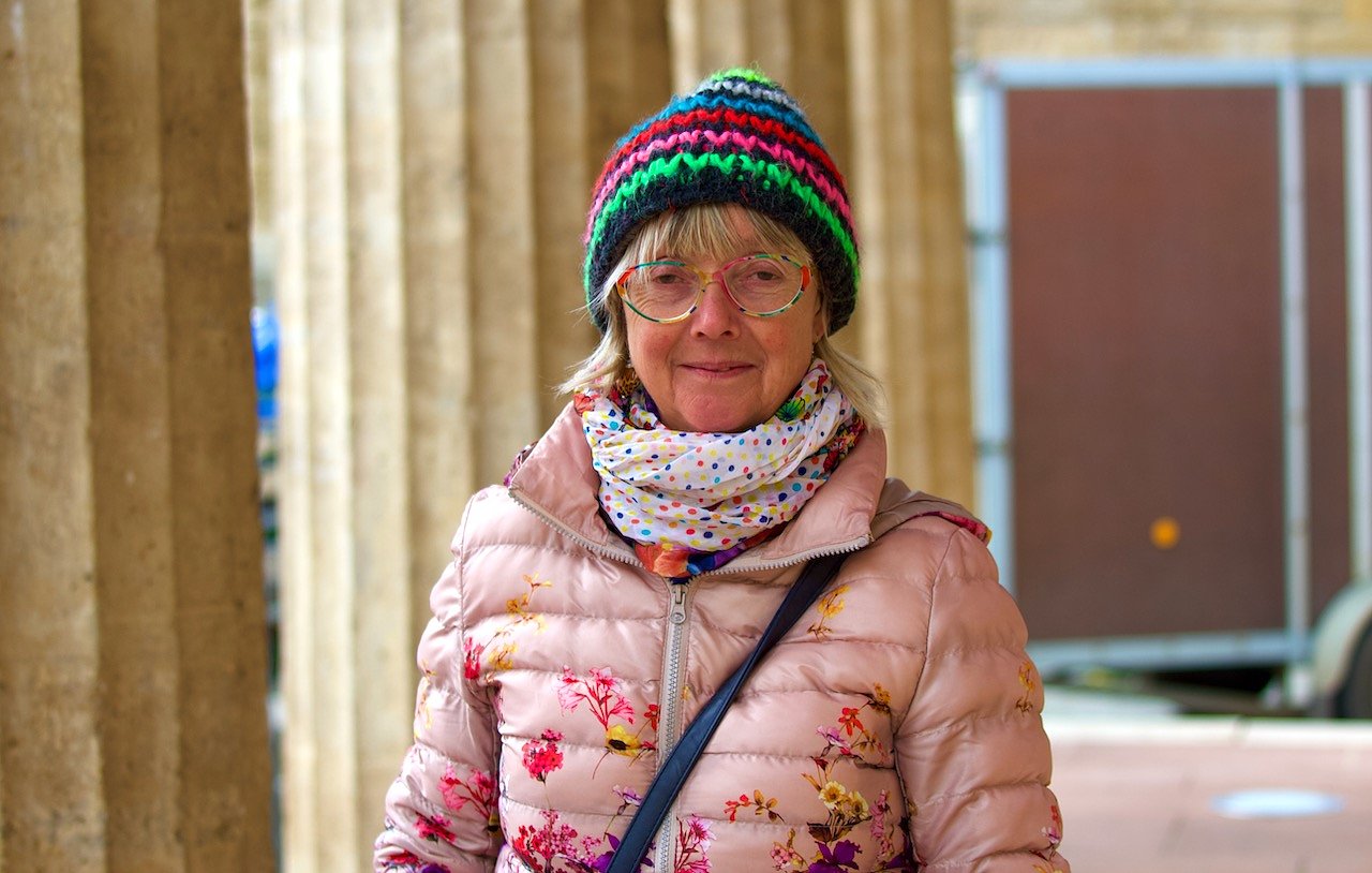 Auf eine Person wird man gleich aufmerksam. Ihre Augen zeigen, dass sie lächelt unter der rosa Maske. Was ist das für eine Frau, die an jedem Sondershäuser Wochenmarkttag gute Laune verbreitet und bunt gekleidet von einem Marktstand zum anderen geht?