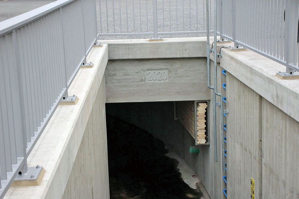 Im Offenen Ausbaustück, Höhe ATU, wurde eine Löschwasserentnahmestelle und eine Pegelmessstelle im Gewässerprofil eingebaut.