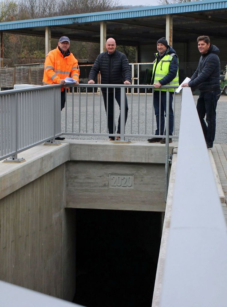Ronald Axt vom Planungsbüro Ingenieurgesellschaft G. König mbH aus Sondershausen, Sondershausens Bürgermeister Steffen Grimm (pl), Michael Asche vom Bauamt der Stadt Sondershausen und Frank Predatsch von der Baufirma HTB, Hoch- und Tiefbau GmbH Küllstedt aus Küllstedt präsentieren den Auslauf des kleinen Flüsschen Bebra, der sich nur 4 bis 5 Kilometer durch die Stadt schlängelt, und am Ende an der Gänsespitze in die Wipper mündet.
