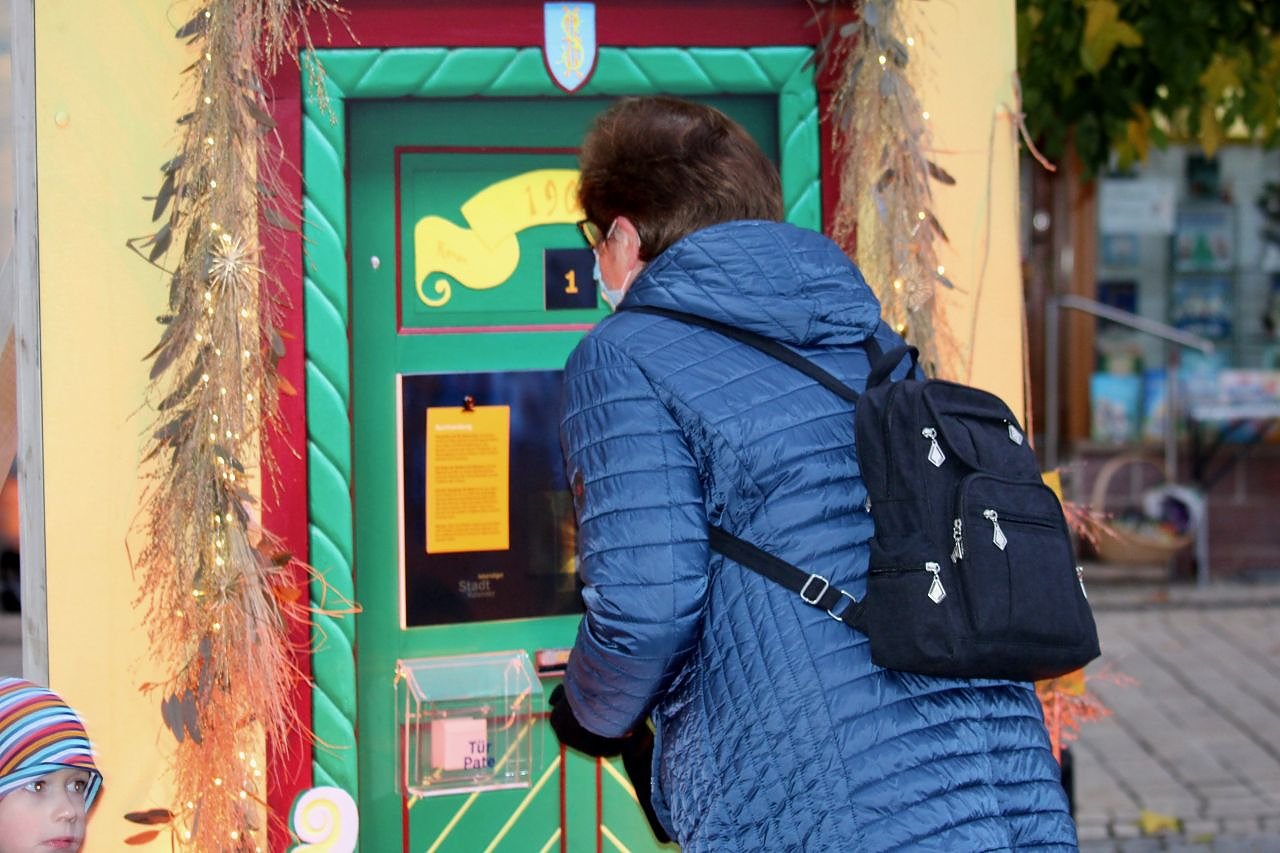 einzuhalten. Interessiert und ein bisschen neugierig betrachteten die Besucher die bunt verzierte Adventstür.