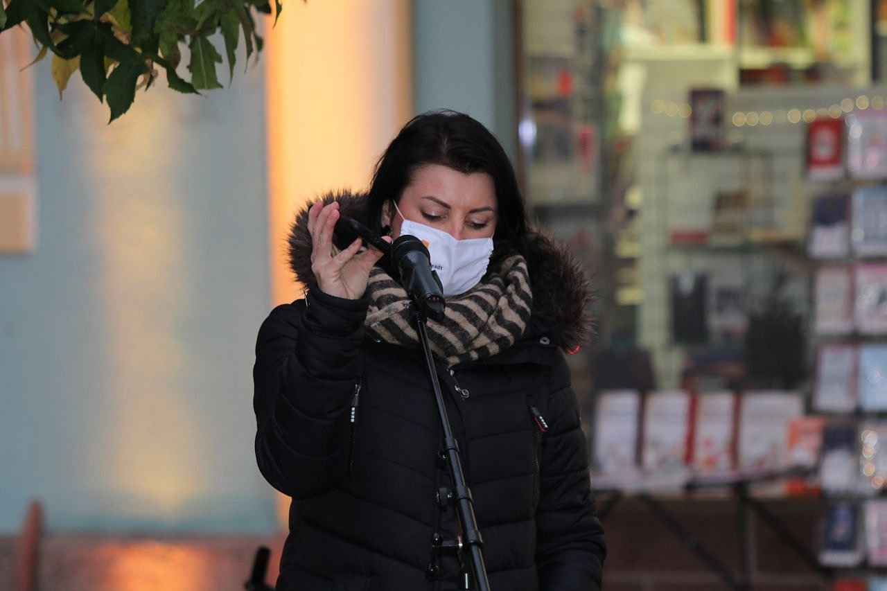 Bürgermeister Strejc begrüßte auch die zahlreichen Bürgerinnen und Bürger, die sich über den ganzen Marktplatz verteilt hatten, um die Corona-Regeln