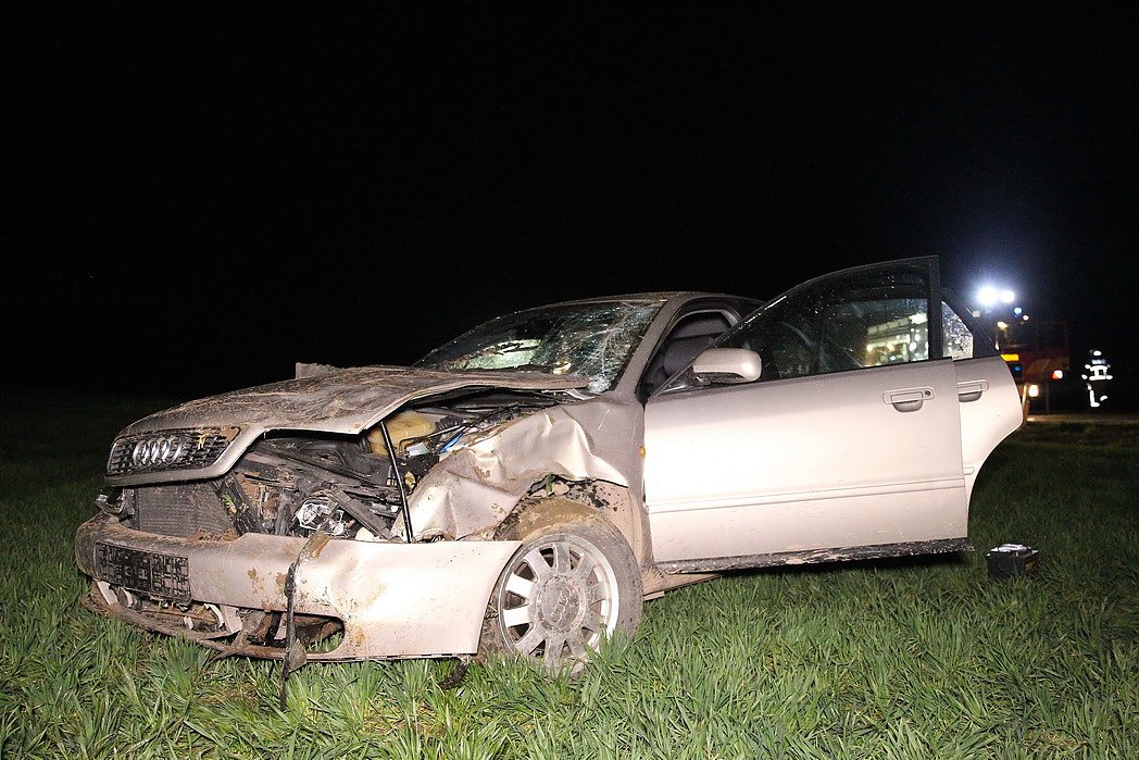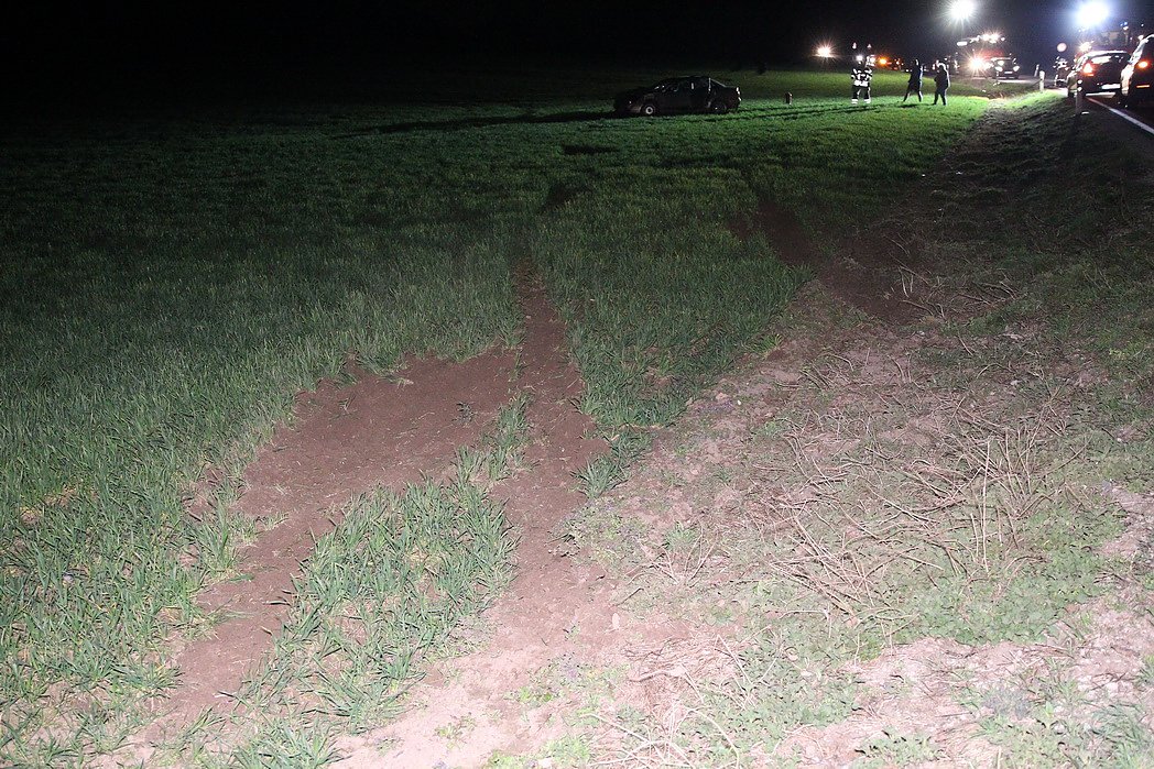 Aus bisher ungeklärter Ursache kam die Autofahrerin auf gerader Strecke nach links von der Fahrbahn ab und überschlug sich auf dem angrenzenden Acker mehrfach.
