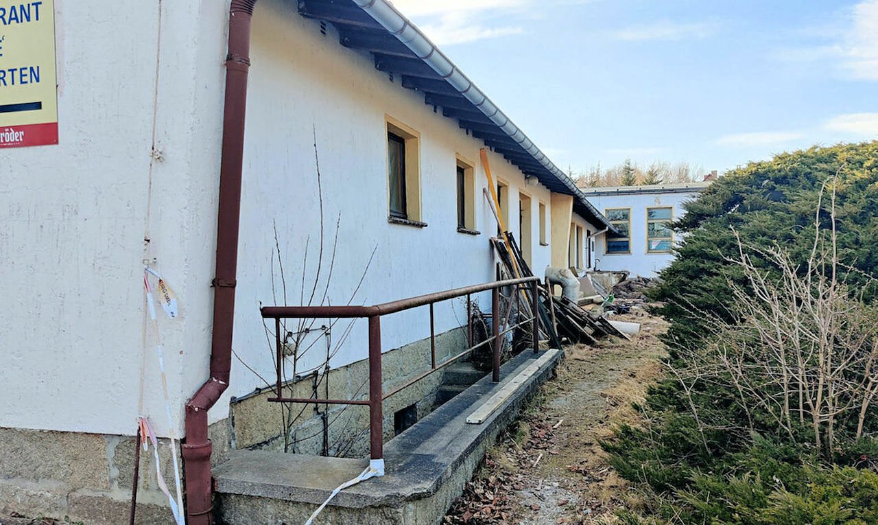 Die Aufnahmen Peter Bleis zeigen nur den Gasstättenkomplex der Anlage bei Altenbrak im Oberharz. Ganz in der Nähe war auch ein Kinderferienlager, das in einem ähnlich traurigen Zustand ist. Die Gebäude wurden zeitweise als Asylunterkunft genutzt, sind jetzt aber verwaist.