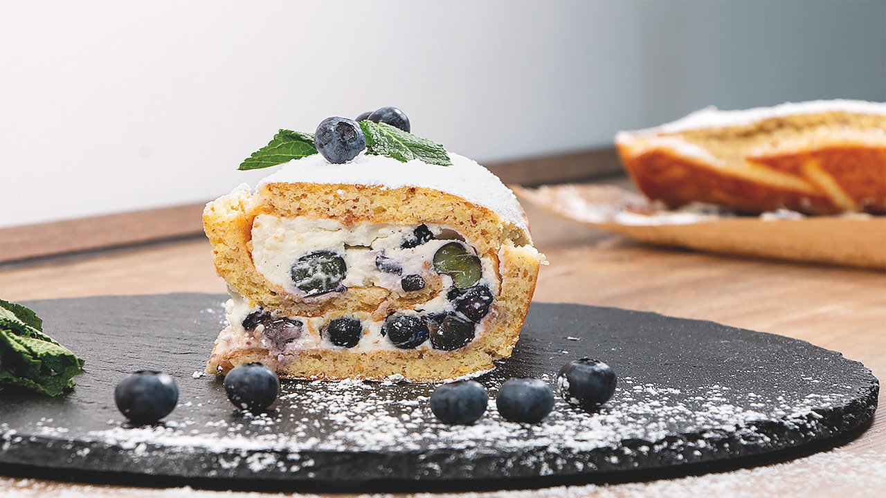 Ein Hauch von Sommer: glutenfreie Kartoffel-Biskuitrolle mit Heidelbeercreme