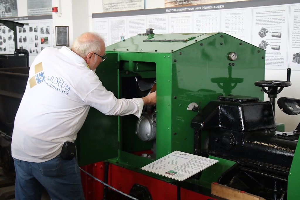 Hinter jedem Motor, jedem Traktor und jeder Lok steckt eine eigene Geschichte, die zuweilen recht abenteuerlich ausfallen kann. So hat man es, mit einigem hin und her, geschafft einen Dieselmotor aus Indien nach Deutschland zu schaffen, der auf der Technik der DDR-Ingenieure beruht oder hat eine ganze Reihe alter Grubenbahnen aus der Schweiz reimportiert. Allein wäre das niemals möglich gewesen, erklärte Franke heute und bedankte sich bei den vielen Unterstützern, allen voran Helmut Peter, der das Haus nicht nur mit aus der Taufe gehoben hat und unterstützt, sondern auch seinen Fuhrpark gerne zum Transport zur Verfügung stellt. Mit Silvio Wagner konnte man die alte Feuerwache fit machen, das BBZ und die Spedition Otto stellen bei Bedarf schweres Gerät, Jobcenter und Landkreis sorgen immer wieder für Arbeits- und Aushilfskräfte, die Stadt Nordhausen gibt finanzielle Stützen.