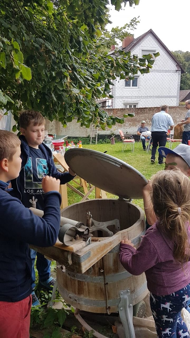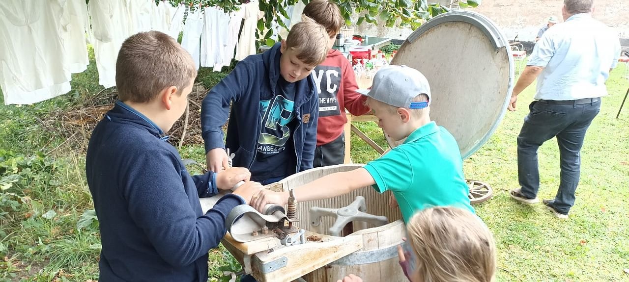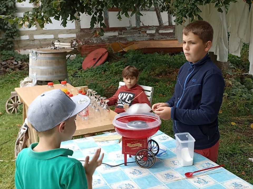 So konnten wir nach vielen Monaten einmal wieder zeigen, was wir im Vereinshaus so gebaut, gestaltet, gesammelt und gekegelt haben. Wir haben über früher geschwatzt und konnten sogar einige Aufzeichnungen mit Hilfe der Gäste ergänzen. Ganz gemütlich saßen wir bei Soljanka, Kaffee und Kuchen und die Kinder hatten Spaß beim Betreiben der alten Bottich-Waschmaschine, der Zuckerwatte-Maschine und auch beim Kegeln. Wir konnten uns über etwas mehr als 25 Besucher freuen, hoffen aber grundsätzlich auf größer werdendes Interesse bei unseren Hainröder Dorfbewohnern.