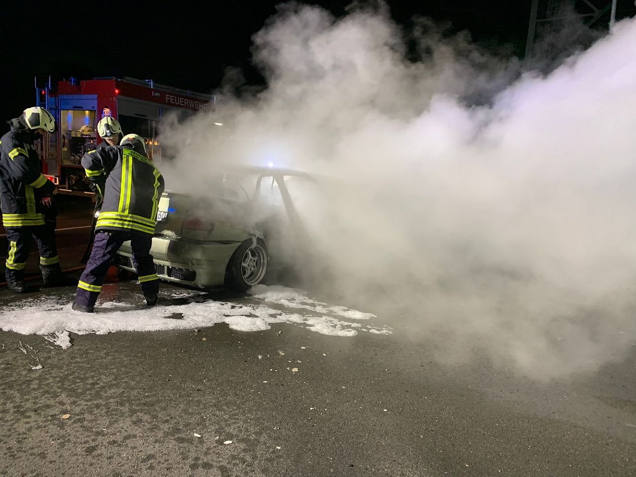 Danach stieg Qualm auf und kurze Zeit später schlugen Flammen aus dem Fahrzeug. Der Fahrer konnte sein Fahrzeug noch in einer Einfahrt abstellen und es verlassen. Eigene Löschversuche mittels Feuerlöscher schlugen fehl. Er konnte nur noch zusehen wie sein Auto ausbrannte.