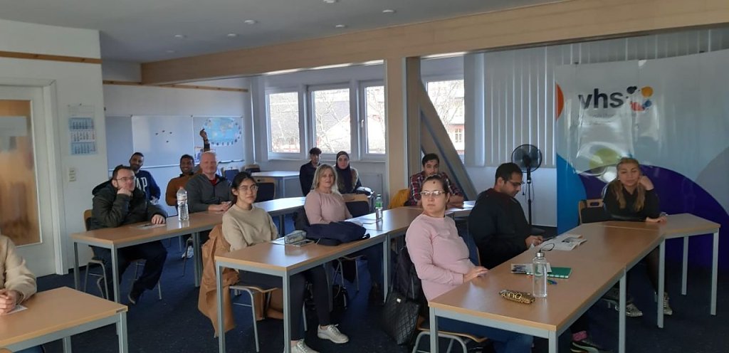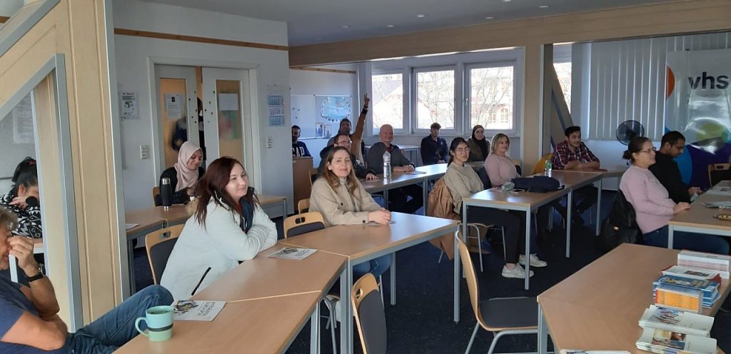 Deshalb war es nicht verwunderlich, dass an der Vorlesung in den Räumen der Kreisvolkshochschule mehr als zwanzig Interessierte Kursteilnehmer und Lehrkräfte aus aller Herren Länder teilnahmen.