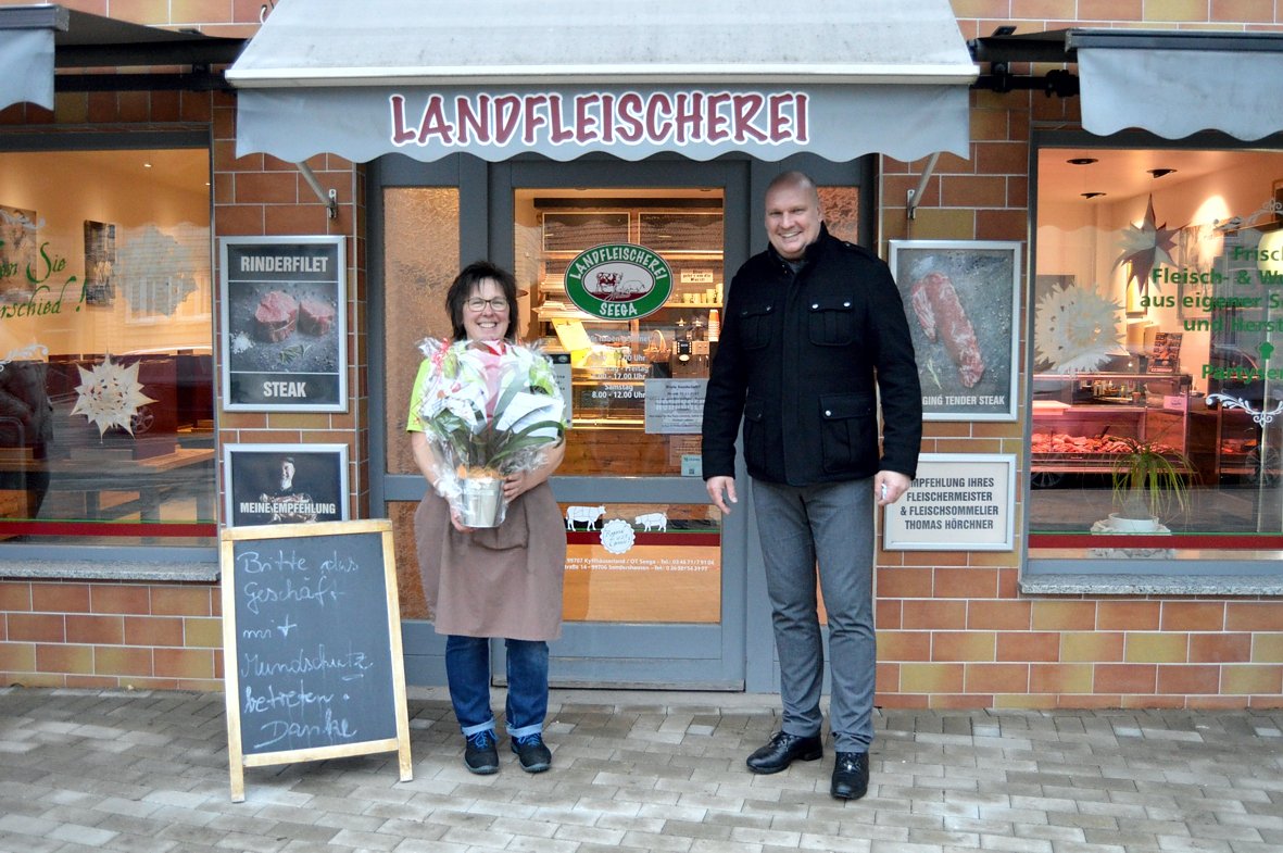 Bürgermeister Steffen Grimm bedankte sich bei der bauausführenden Firma (Hoch- und Tiefbau Ebeleben GmbH), dem planenden Ingenieurbüro Bach, dem Thüringer Landesamt für Bau und Verkehr, als Fördermittelgeber und natürlich dem TAZ und der Stadtwerke Sondershausen für die gemeinsame Umsetzung der Maßnahme. Steffen Grimm überreichte der Fleischerei Hörchner, stellvertretend für alle Anwohner eine kleine Aufmerksamkeit und bedankte sich bei allen Anwohnern für Ihre Geduld während der gesamten Baumaßnahme.