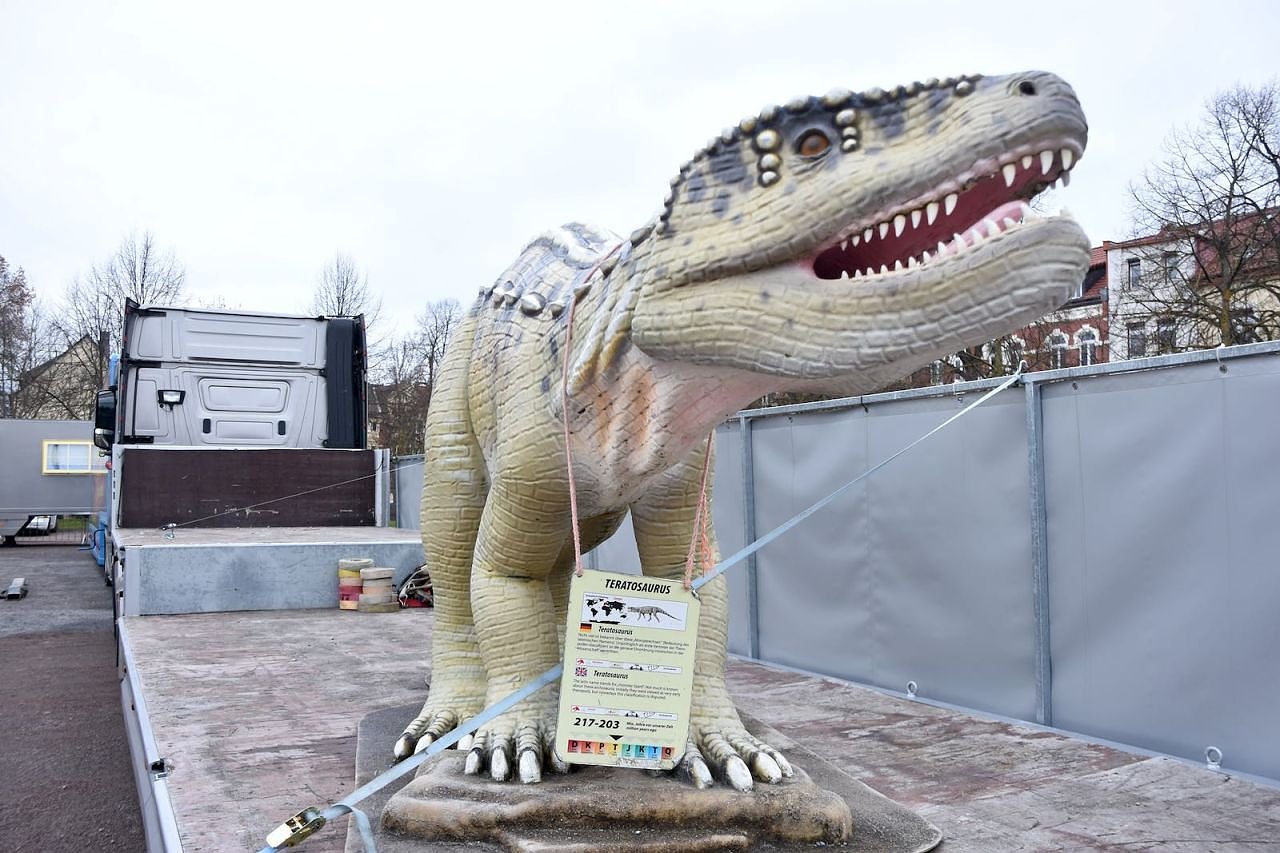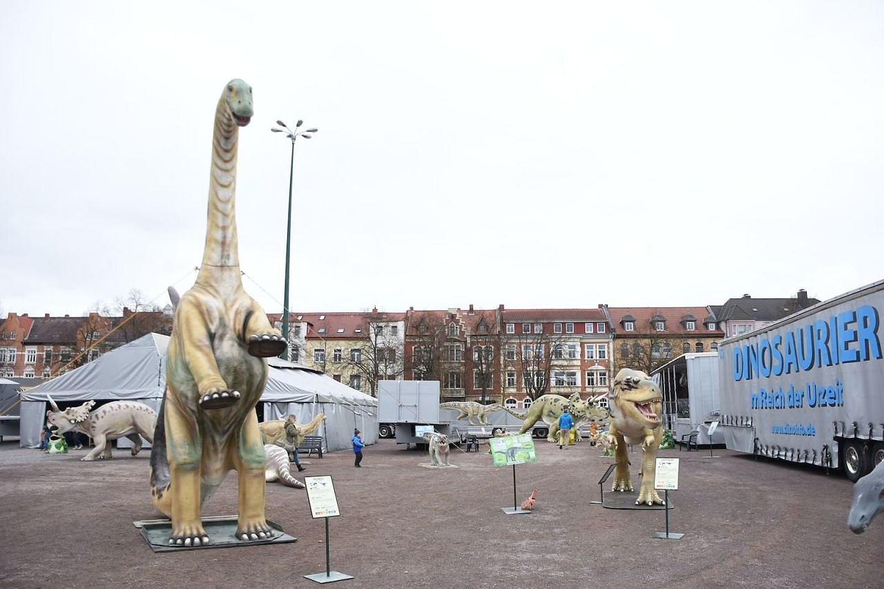 Die Urzeit lässt grüßen: Von heute bis Sonntag, 28. November, gastiert eine Dinosaurier-Ausstellung auf dem August Bebel Platz.