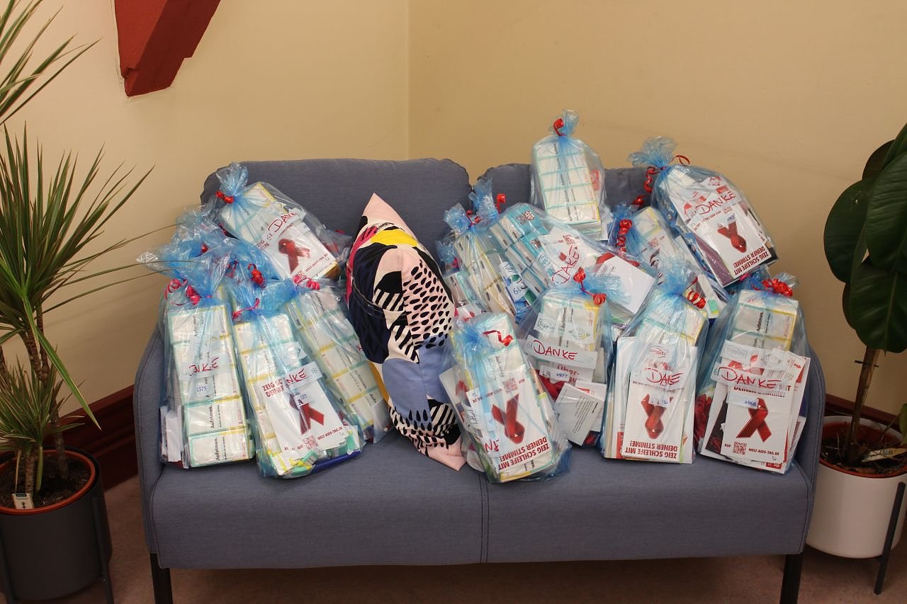 In Kooperation mit der HIV-Beraterin des Gesundheitsamtes Nordhausen, Kathrin Wolff, konnten zahlreiche Goodie- Bags mit tollen Give Aways und Infomaterialien für die Klassen gepackt werden.
