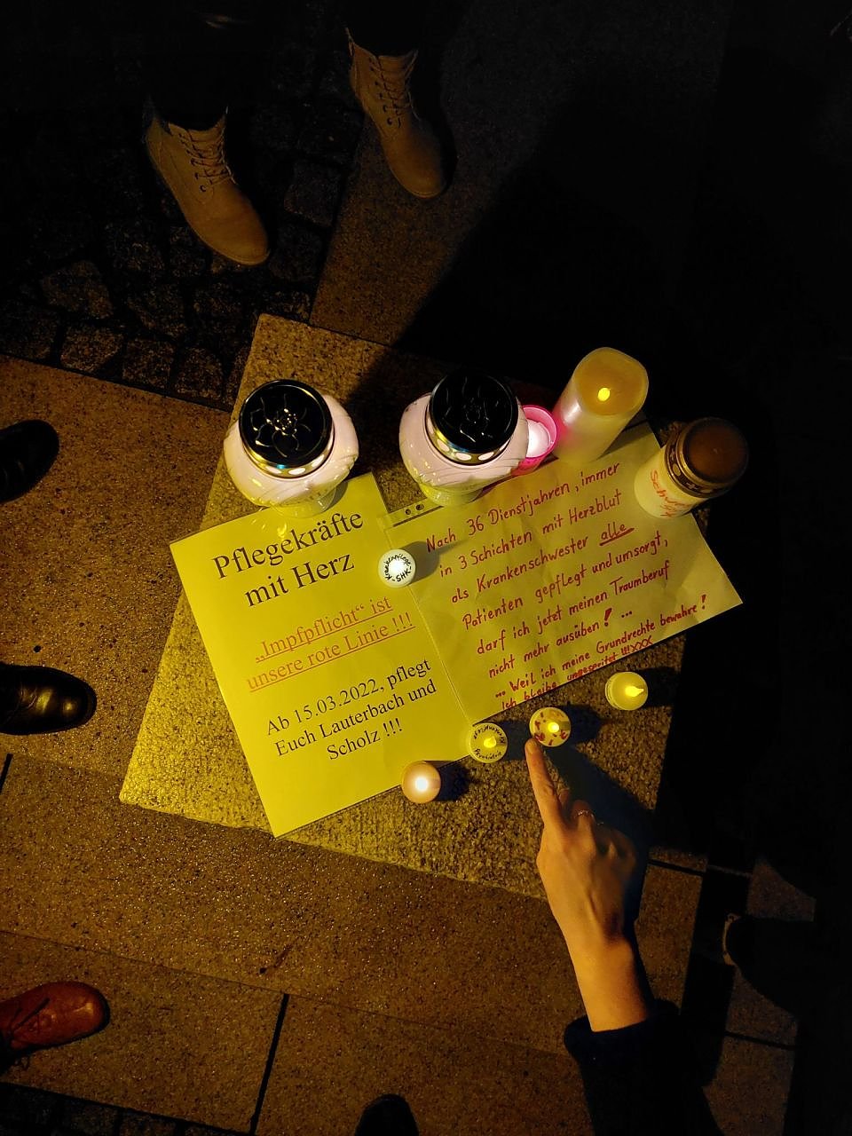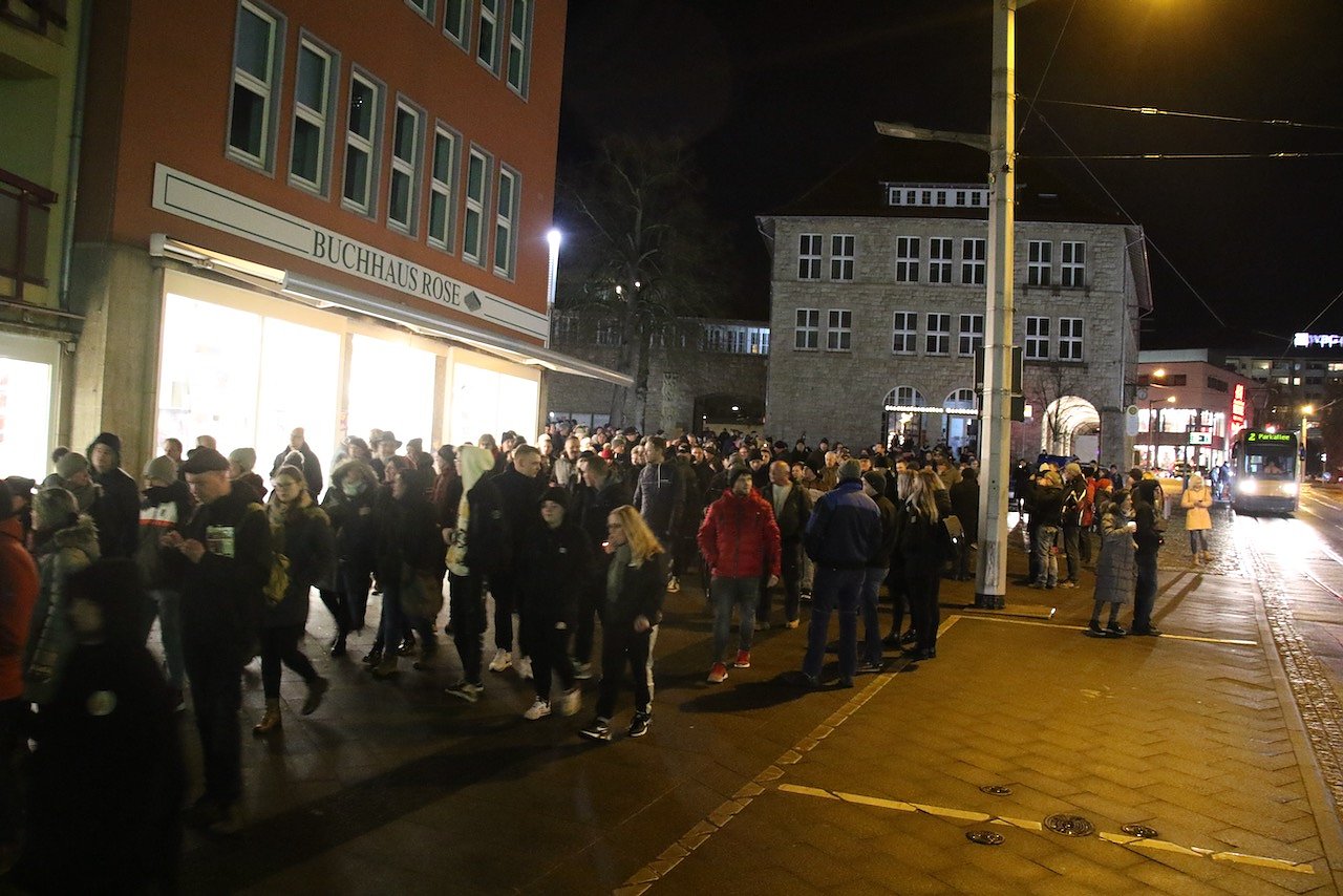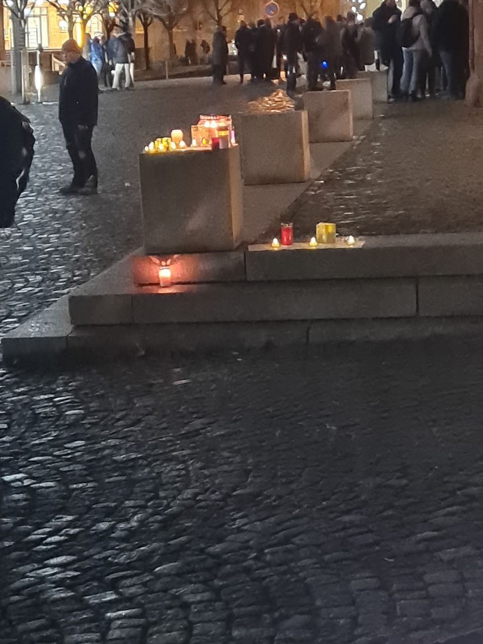 Im Großen und Ganzen hielt man sich an den Ursprungsgedanken, von ein paar Trillerpfeifen und vereinzelten Zwischenrufen bei einer Durchsage der Versammlungsbehörde einmal abgesehen. Die Demonstrationsrunde verlief auch heute wieder friedlich, am Rathaus wurden Kerzen abgestellt.