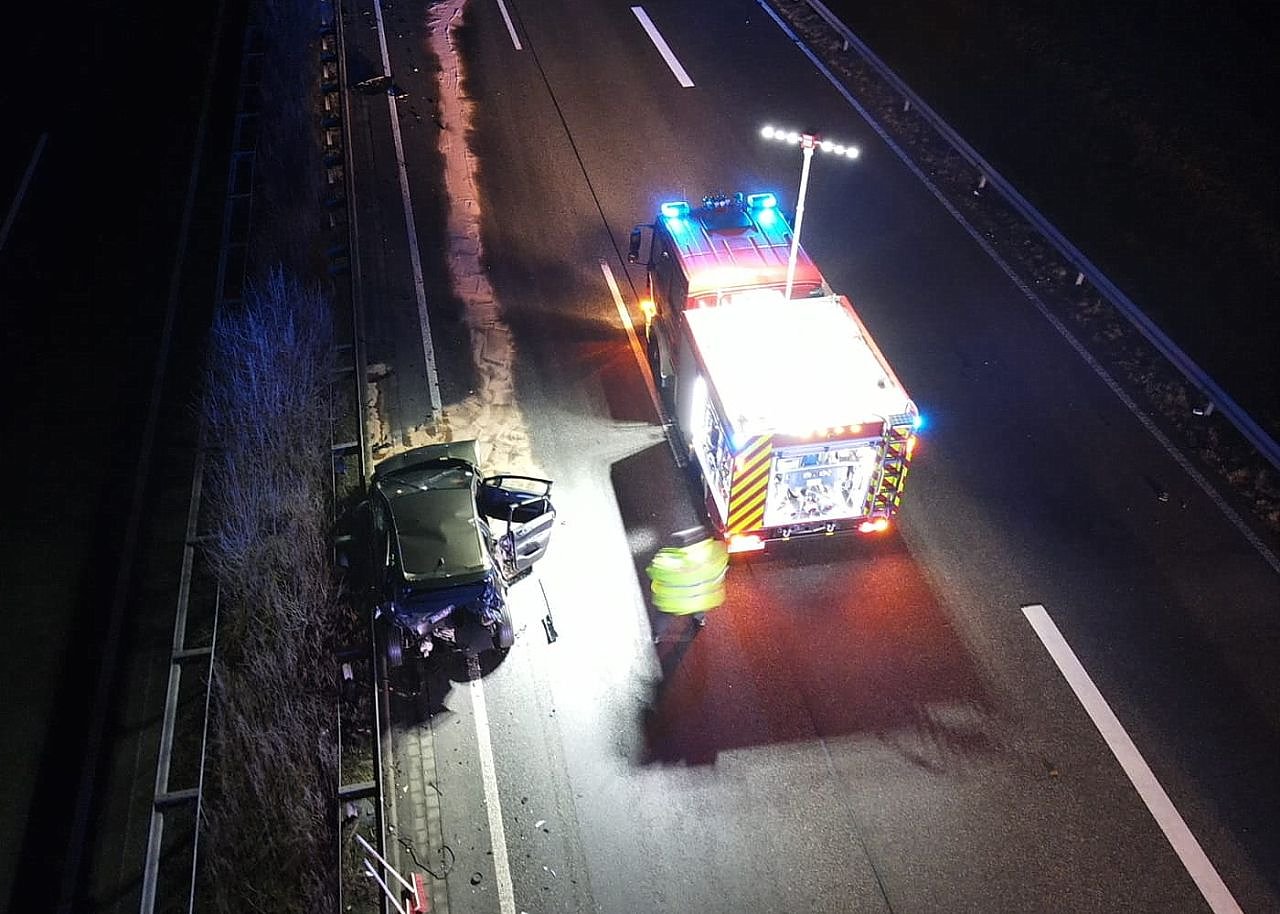 Die alarmierten Rettungskräfte rückten gegen 23:45 Uhr aus, in ihrer Alarmmeldung ging man von einer eingeklemmten Person im PKW aus. Vor Ort bestätigte sich die Meldung nicht. Die Autofahrerin hatte sich selbst aus dem Wrack befreien können, irrte unter Schock stehend auf dem angrenzendem Feld umher. Während der Fahrer des polnischen Kleintransporters den Unfall nahezu unverletzt überstand musste die junge PKW Fahrerin schwerverletzt in ein Krankenhaus gebracht werden.