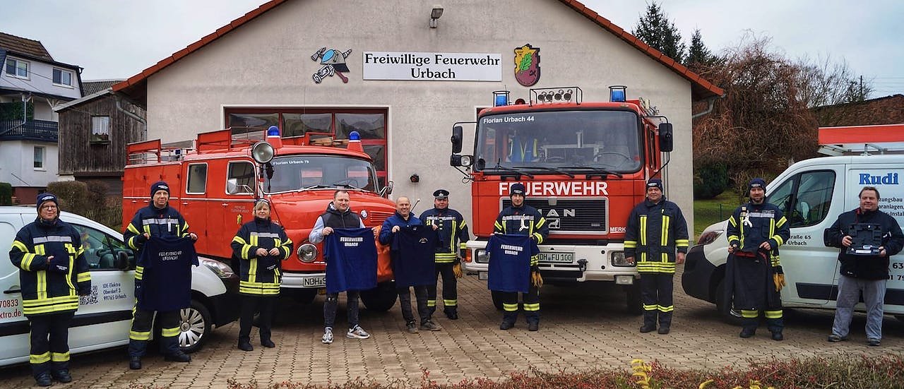 Die Kameradinnen und Kameraden der Freiwilligen Feuerwehr Urbach bekamen von mehreren Sponsoren Bekleidung für die persönliche Ausrüstung überreicht.