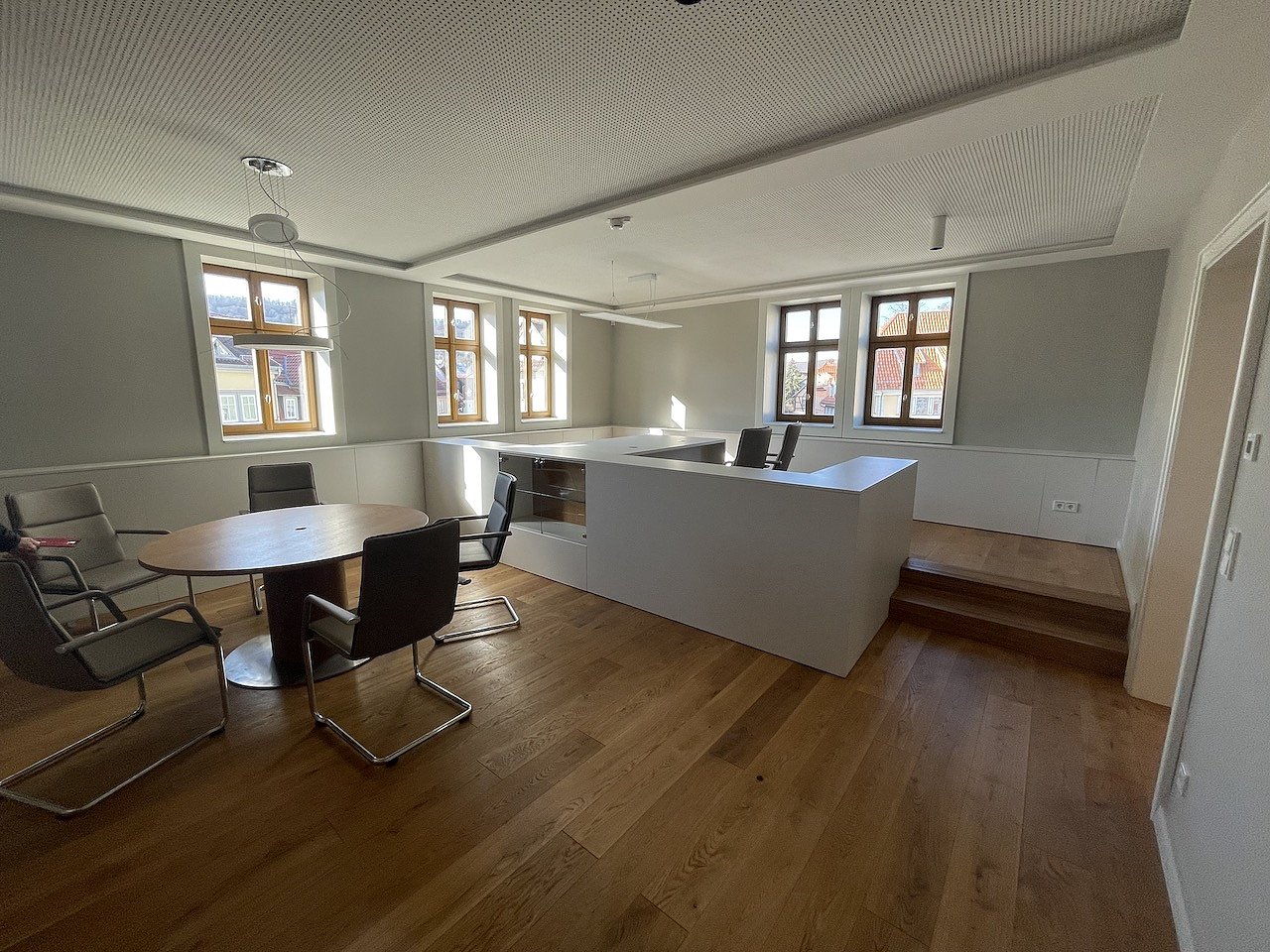 Der Ratssaal befindet sich ebenso auf dieser Ebene. In der obersten, im Vergleich zum alten Rathaus neugeschaffenen Ebene 4, arbeiten zukünftig die Mitarbeitenden des Fachgebietes Personal & Organisation. Neben den genannten Bereichen der Verwaltung in den Ebenen 0 bis 4, befinden sich im Untergeschoss des Rathauses der Trausaal sowie die ebenso völlig neu gestaltete Touristinformation. Wir freuen uns darauf, Sie bald im neu gestalteten Rathaus begrüßen zu dürfen. Es ist geplant am 3. Mai einen Tag des offenen Rathauses zu gestalten.