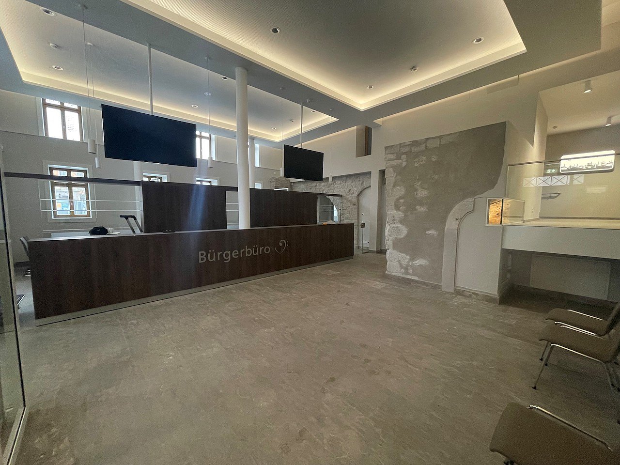 Das Mobiliar für die Büros der Verwaltung wird bereits eingebaut, sodass in wenigen Wochen wieder Besucher im Rathaus empfangen werden können. Ein genaues Datum kann hierfür leider noch nicht bekannt gegeben werden, geplant ist in der ersten Aprilhälfte die Arbeit im neuen Rathaus aufzunehmen. Für die Besucher übersichtlich ist das Gebäude in fünf verschiedene Ebenen unterteilt.