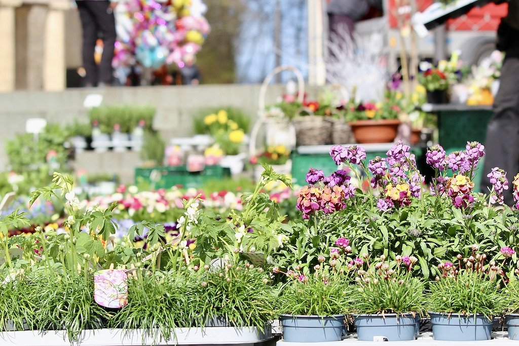 Reges Markttreiben bei strahlendem Sonnenschein