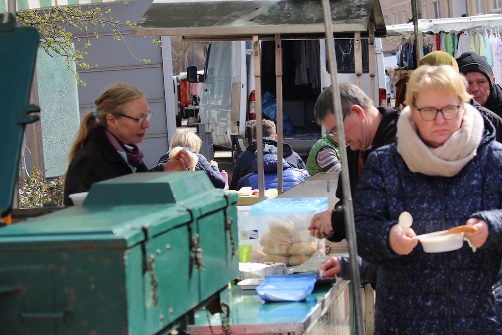 Bürgermeister Steffen Grimm zeigte sich zufrieden über den sehr gut besuchten Ostermarkt. Zahlreiche Händlerinnen und Händler boten entlang der Hauptstraße und der Johann-Karl-Wezel-Straße die unterschiedlichsten Waren an. Stände mit Kunsthandwerk, Spielzeug, Schmuck, Textilien, Süßigkeiten, Zuckerwatte, Luftballons, Blumen und Blumengestecke säumten die Straßen. Auch die Essensstände waren gut besucht und luden zu einem Schwätzchen ein.