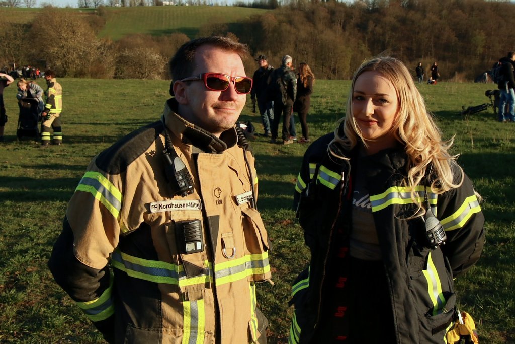 Die Vereinsfreunde der TSG Krimderode waren schon eine Stunde früher auf dem Hang und haben vom Rost bis zum Getränkestand das nötige vorbereitet. Das Feuer war schon immer gut besucht, aber heute, so zumindest das Gefühl, war es noch einmal etwas voller und am Versorgungspunkt kam man bald ins schwitzen ob des "Gewimmels". Schwitzen durfen auch die Kameraden der Feuerwehr, die den traditionellen Großbrand im Blick behielten.