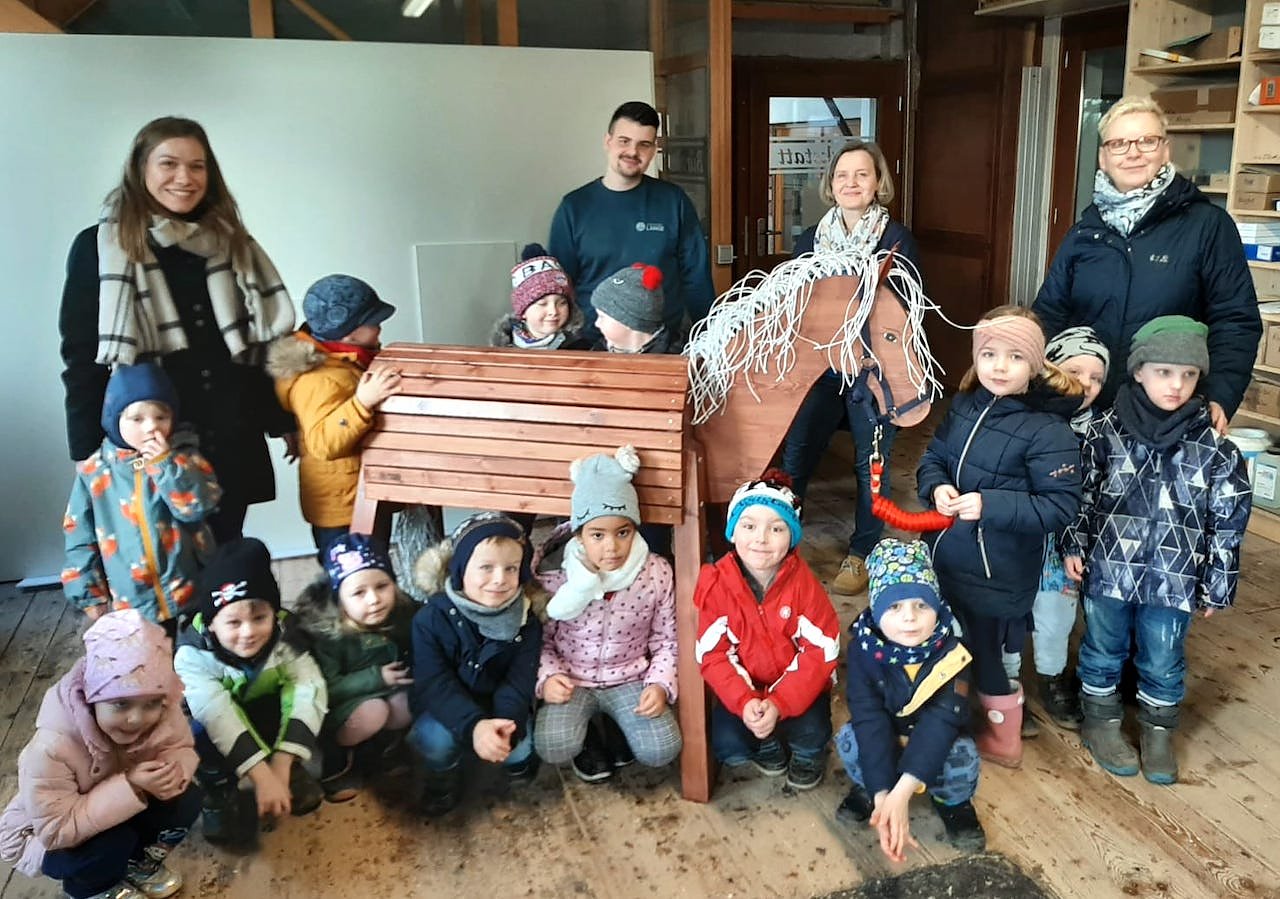 Tischlerei Lange überraschte Kindergartenkinder
