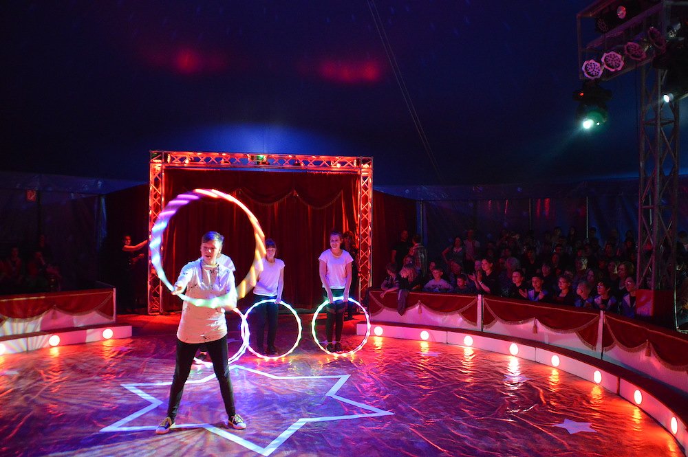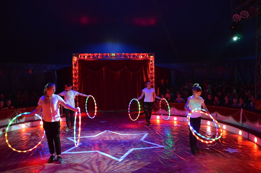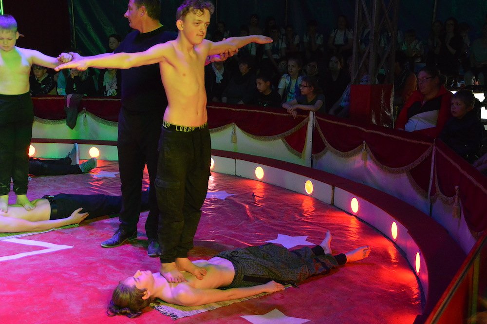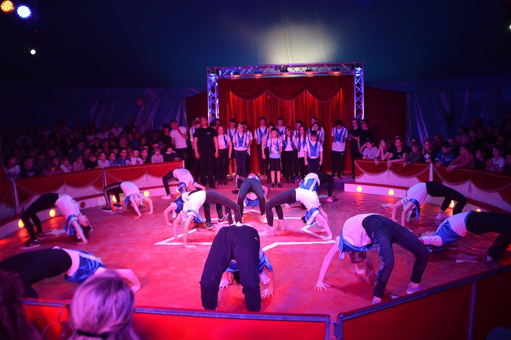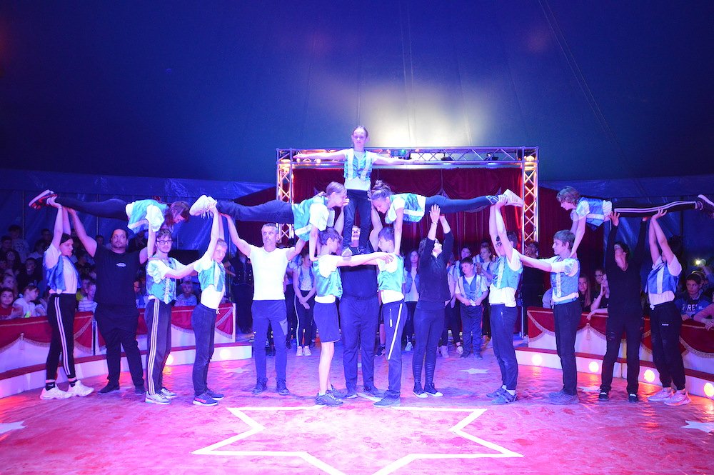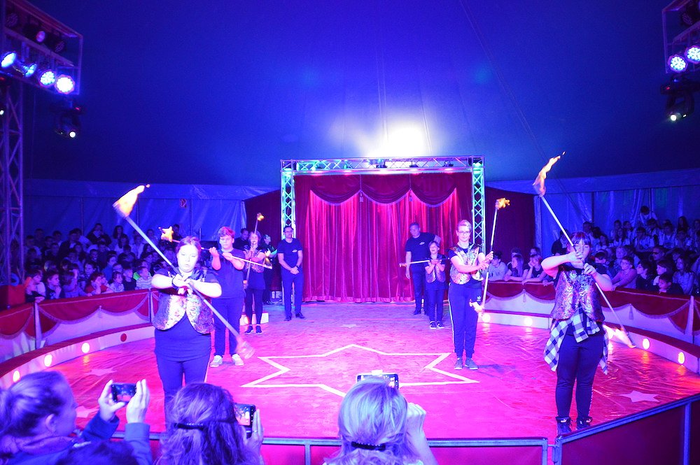Gemeinsam mit den Trainern des Zirkus studierten die Schüler der Klassenstufen 1 – 10 große und kleine Kunststücke ein. Zwischen Jonglage, Feuershow, Seiltanz, Clownerie und Akrobatik war für jeden etwas dabei.