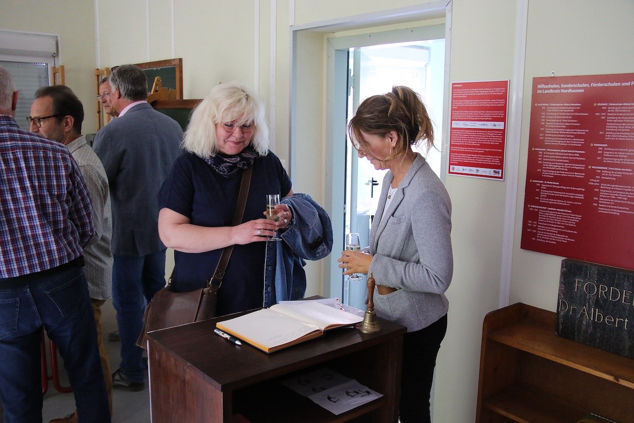 Seitdem hat sich viel getan, die Schule musste über das Jahrhundert immer wieder umziehen und residierte schon an so ziemliche jedem denkbaren Schulstandort der Stadt. Erst 1988 konnten die Räumlichkeiten am Geiersberg bezogen werden. Das Förderzentrum kann auf eine ereignisreiche Geschichte zurückblicken und die sollte auch immer ihren Platz im Schulalltag haben, dass es einen Raum für ein Schulmuseum gibt, hat daher Tradition. Seit man aber 2019 mit der Bleicheröder Förderschule zusammengegangen ist, wurde der Platz knapp. Für den Blick in die Geschichte musste ein neuer Ort gefunden werden und den konnte man jetzt, pünktlich zum Jubiläum und mit der Unterstützung von Stadt und Landkreis, überarbeiten und einweihen.