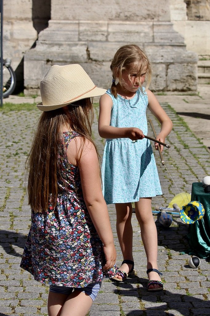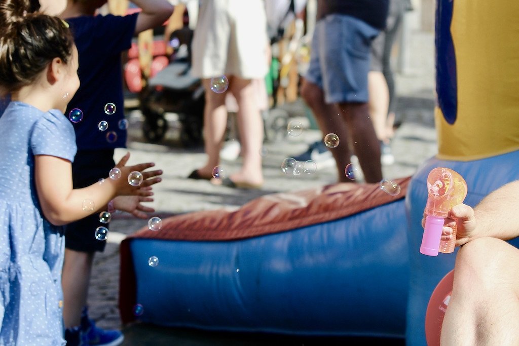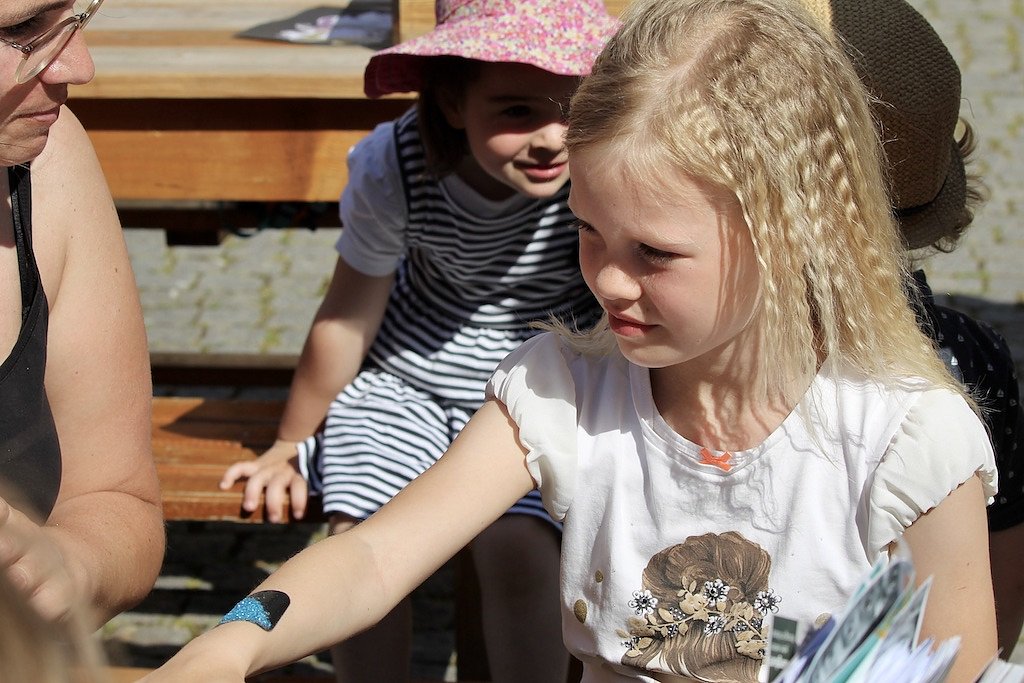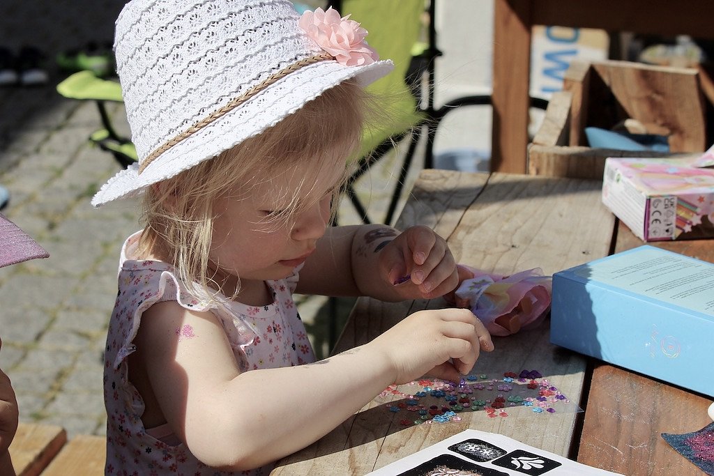 Unsere Erwartungen wurden sogar noch übertroffen, resümierte Julia Fuchs am Nachmittag und beschrieb den ganze Tag in einem Wort: Super! Neben einem gigantischen Aufkommen an kleinen weißen Plastikenten (über 400 gingen heute bereits über den Ladentisch) erstaunte besonders die hohe Dichte an Einhörnern auf den Quadratkilometer, die von glücklichen und meist noch Eis schleckenden Kindern an den Ständen, Buden und Bühnen vorbeigetragen wurden.