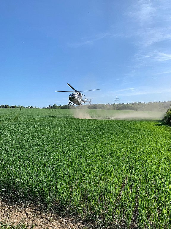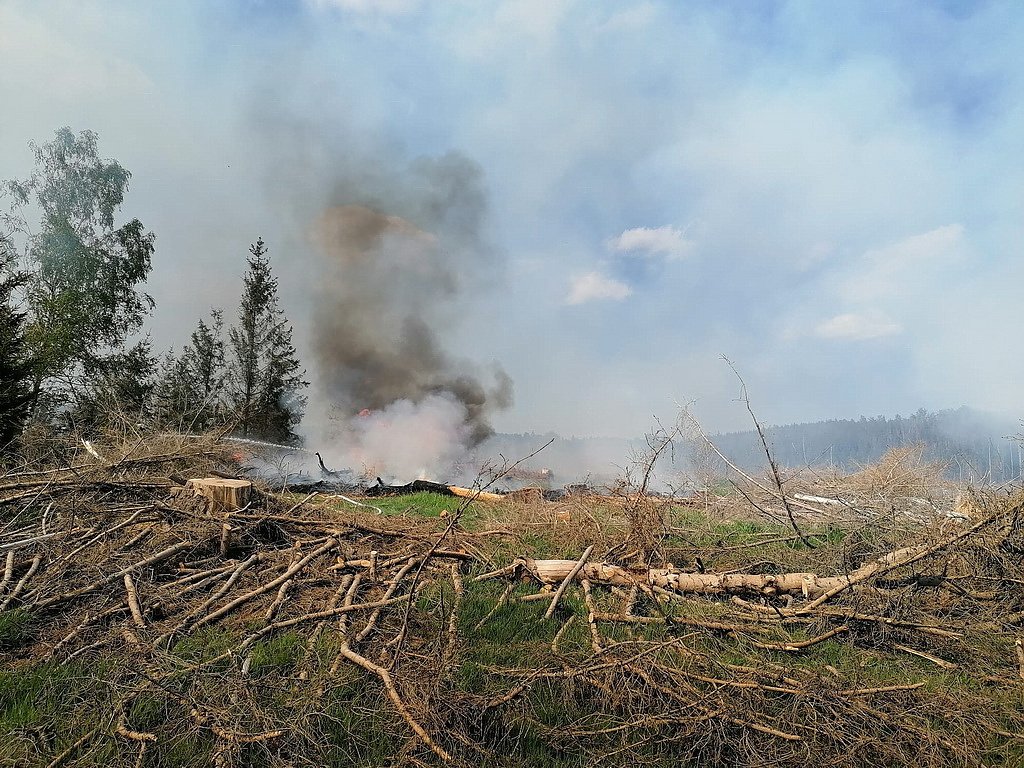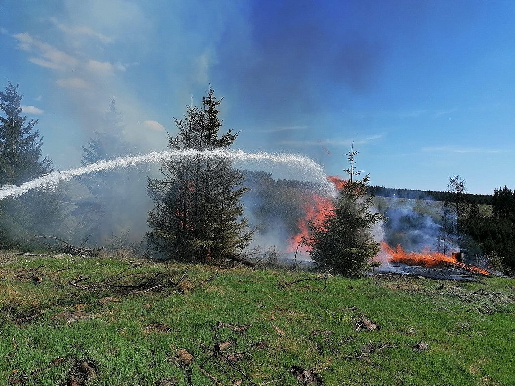 Unterstützung bei der Brandbekämpfung gab es auch aus der Luft durch den aus Thüringen angeforderten Polizeihubschrauber welcher mittels eines Löschwasser-Außenlastbehälters die Brandherd bekämpfte.