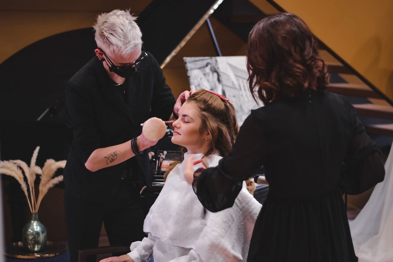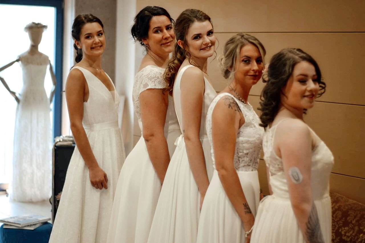 Für ihr Projekt Brautservice-Umstyling von Haut und Haar am Modell" waren jetzt angehende Friseurinnen und Friseure des Staatlichen Berufsschulzentrums Nordhausen (SBZ) in der Boutique LIEBE für Hochzeitsmode auf Burg Scharfenstein. Gemeinsam mit ihrer Lehrerin Conny Meinhardt konnten die Schüler hier ihre Fachkompetenz, die sie in den vergangenen drei Ausbildungsjahren erworben haben, unter Beweis stellen. Ihre Aufgabe war es, im Team oder allein ein Damenmodell je nach dem individuellen Typ und aktuellen Trends der Saison in eine Braut zu verwandeln. Festlich frisiert und perfekt geschminkt schlüpften die Modelle in eines der Brautkleider aus der Boutique LIEBE - bereit für das Fotoshooting mit Fotografin Julia Schwarz.