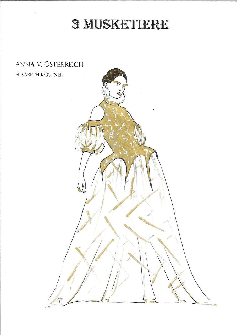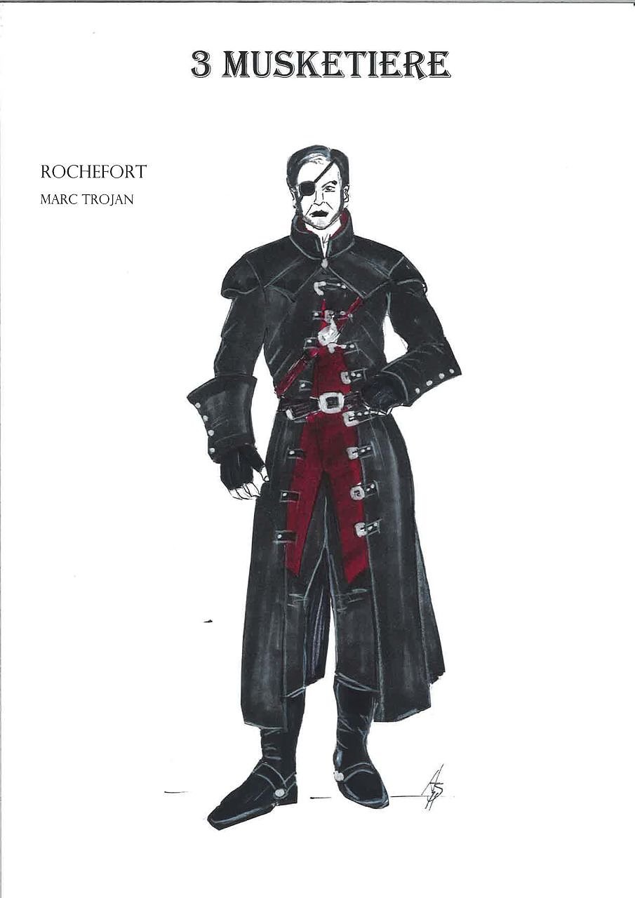 Das von der Milady de Winter. Die Figur hat den Anspruch, eine wunderschöne, attraktive Frau zu sein. Sie wird immer als ein Biest dargestellt, aber man muss genauer schauen, wo das herkommt – sie wurde als 15-Jährige vergewaltigt und dann zudem noch als Hure gebrandmarkt und dafür von Porthos verlassen. Bei ihrem Kostüm habe ich mit den Materialien gespielt. Das Kostüm hat Bestandteile aus Leder, aber ich kombiniere das Leder mit zart durchschimmerndem Chiffon, weil sie eigentlich auch eine zarte, ganz zerbrechliche Seite hat. Diese versucht sie, mit dem Leder zu verstecken. Die Kombination der beiden Materialien lässt das Ganze auch sehr sexy wirken.