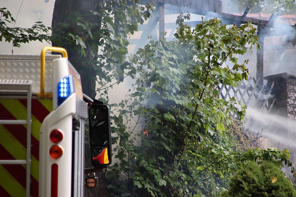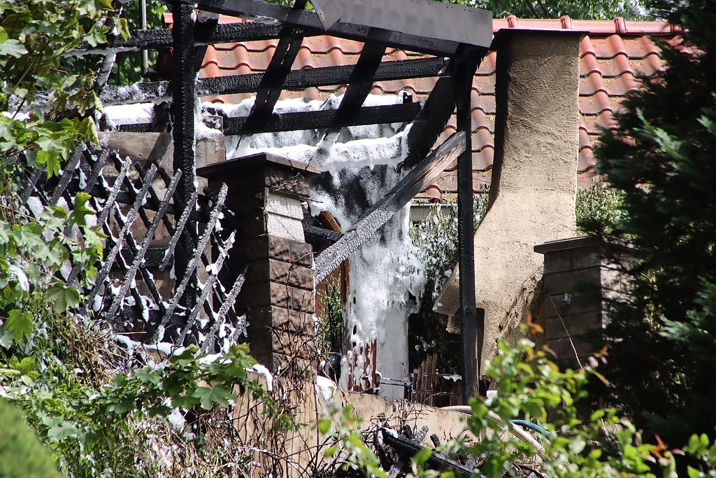 Als die Feuerwehr am Brandort eintraf, stand die Holzkonstruktion bereits in Flammen. Das Feuer konnte jedoch schnell unter Kontrolle gebracht werden. Als problematisch erwies sich allerdings eine Leck geschlagene Gasflasche, die sich nicht mehr abdrehen ließ. Die Verbindungsschläuche waren durch die Feuereinwirkung weggebrannt, die Einsatzkräfte mussten die Gasflasche noch vor Ort kontrolliert abströmen lassen.