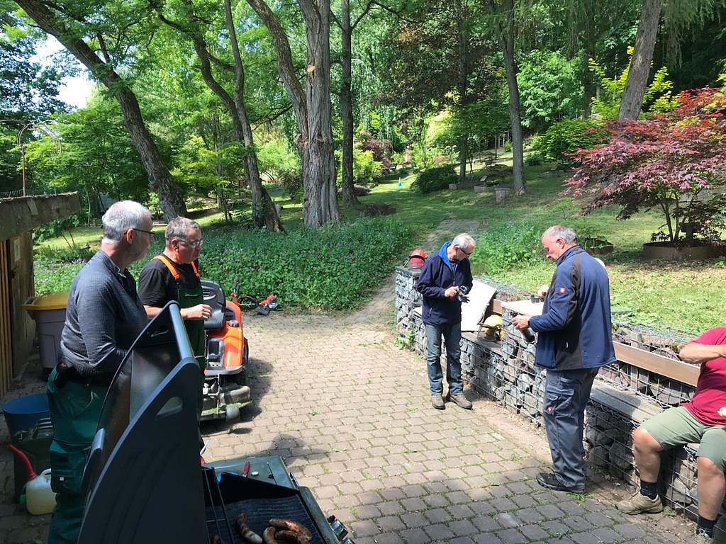 G-mäht, G-schnitten, G-sägt und G-strichen wurde im Park, um pünktlich zum Pfingstfest in dem schönen Gelände alles in voller Pracht hat erstrahlen zu lassen.