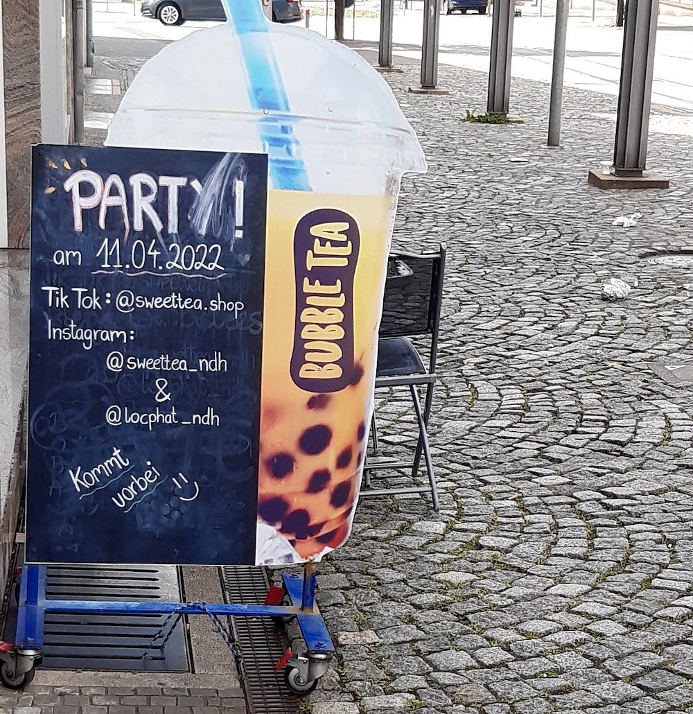 Im Umkreis von gut zwanzig Metern war hier der Müll verteilt, der in den überfüllten Papierkorb an der Haltestelle nicht mehr hineinpasste. Bei näherer Betrachtung stellten sich die meisten herumliegenden Teile als Produkte des benachbarten Geschäftes Bubble Tea heraus. Das unschöne Phänomen einer verdreckten Straßenbahnhaltestelle ist aber leider nicht auf den Pfingstsonntag beschränkt, sondern vielen Nordhäusern schon früher aufgefallen, seitdem der Laden dort eröffnet wurde.
