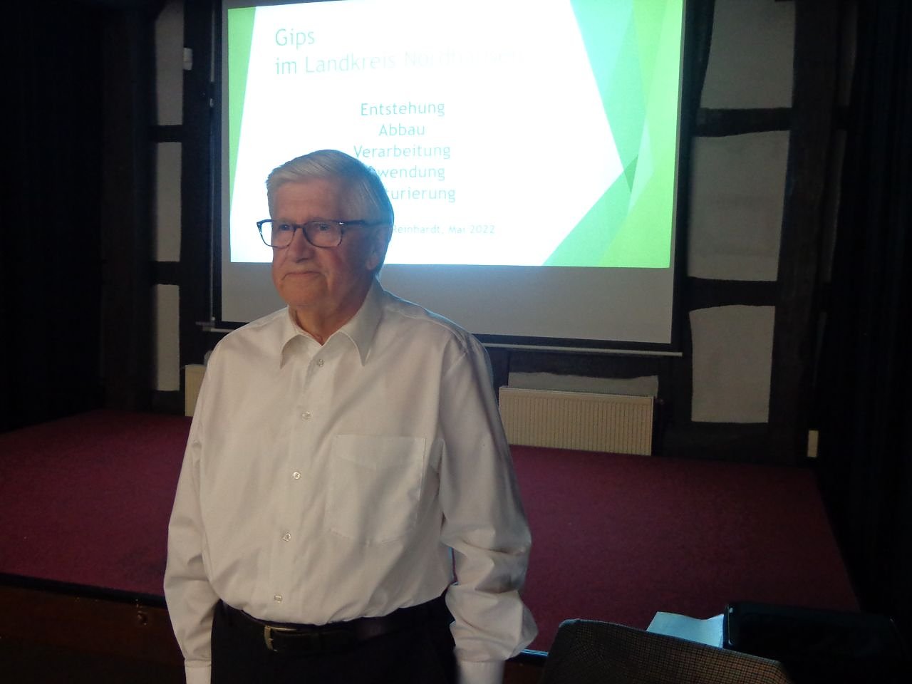 In seinem reich bebilderten Referat nahm Dr. Reinhardt die Zuhörer mit auf eine Zeitreise und schilderte detailreich die Entstehung von Gips und Anhydrit: Das Sulfatgestein, wie es allgemein bezeichnet wird, entstand vor etwa 240 Millionen Jahren und lagerte sich in mehreren Zyklen ab.