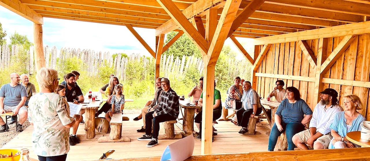 Im weiteren Verlauf gab es die Möglichkeit, sich bei einem kühlen Getränk und guter Atmosphäre untereinander auszutauschen und später bei einem traditionell germanischen Abendessen die Gerichte der alten Germanen zu kosten.