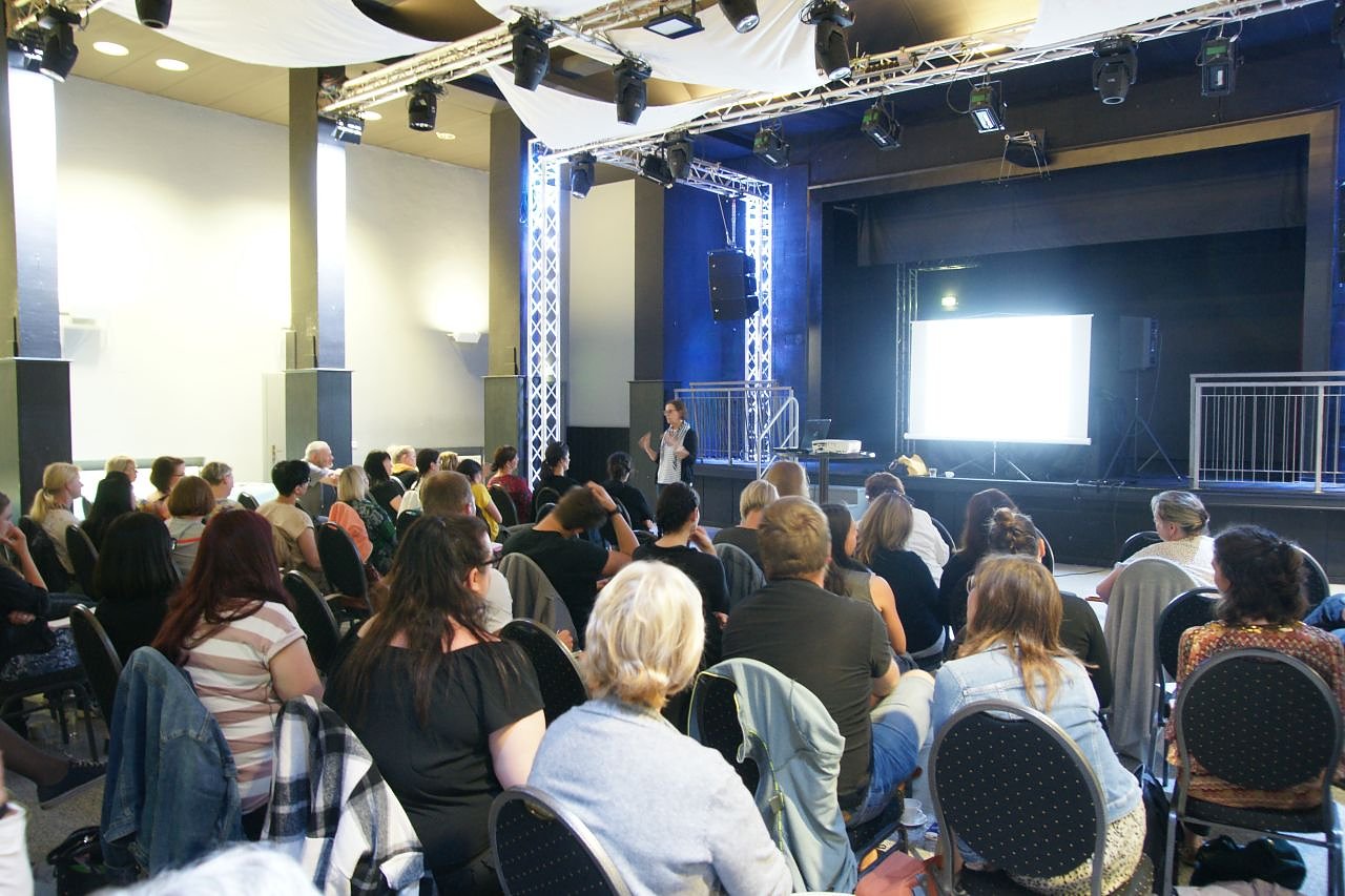 Einen Tag später fanden sich knapp 70 Teilnehmerinnen und Teilnehmer der verschiedenen Bereiche des Jugendsozialwerkes zum Fachtag im Jugendklubhaus ein. Dessen Planung lag in den Händen von Petra Dienemann (Familienzentrum) und Christin John (Koordinierungsstelle Frühe Hilfen des Landkreises Nordhausen). Martina Meixner folgte als Referentin mit vierzigjähriger Praxis und enormen Erfahrungsschatz der Einladung.