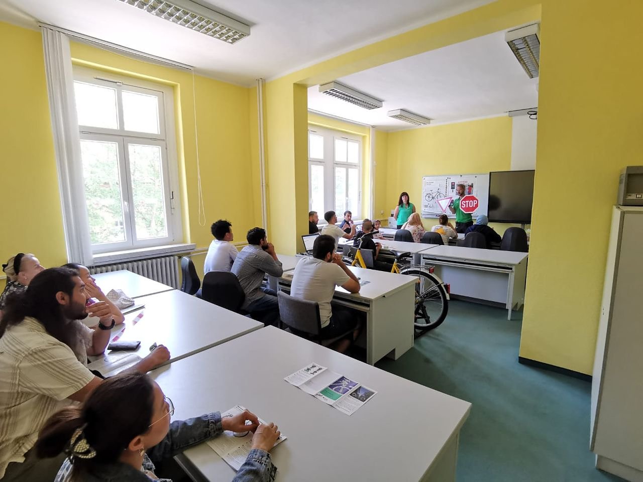 Nachdem sich die Teilnehmer 10 Uhr im Schulungsraum einfanden, eröffnete Jonny Kleinschmidt den Kurs und übergab anschließend an Marko Hermann und Carolin Sobik, welche den Anwesenden vermittelten, worauf es beim Fahrradfahren im deutschen Straßenverkehr ankommt.