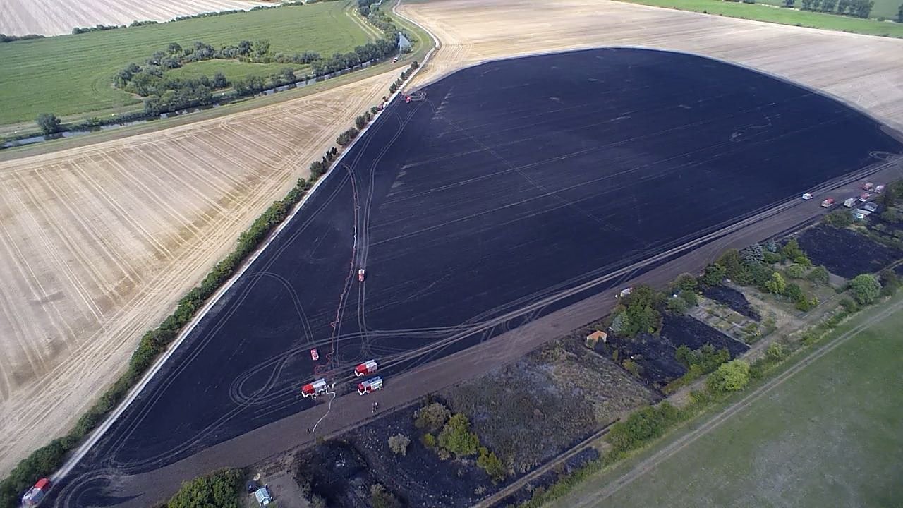 Bereits auf Anfahrt war eine sehr starke Rauchentwicklung zu erkennen. Etwa 30 Hektar Stoppelfeld standen in Flammen, ebenso eine Schrebergartenanlage berichtet An der Schmückes Stadtbrandmeister Silvio Witt.