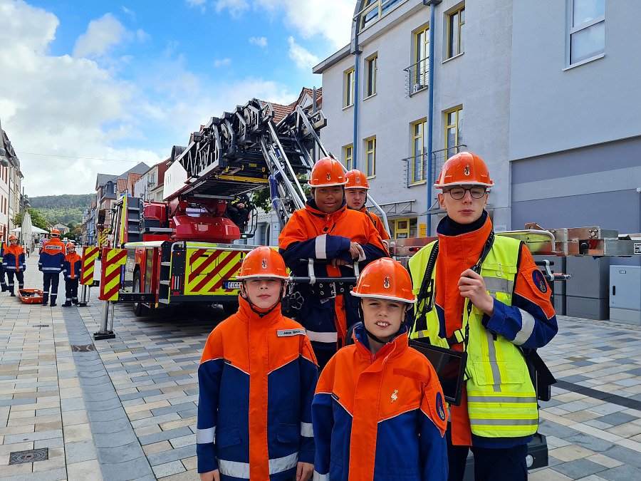 Nach einer ruhigen Nacht ging es am Samstagmorgen aufregend weiter. Aus dem Schlaf riss der Alarmgong die Einsatzkräfte. Eine vermisste Person musste im Wald gesucht und gerettet werden. Nach getaner Arbeit stand eine kleine Einheit Morgensport in der Fahrzeughalle an, bevor sich die Mädchen und Jungen beim Frühstück für den Tag stärkten. Ein Pkw-Brand in einer Garage der Polizeiinspektion Heiligenstadt, eine Personenrettung aus dem ersten Obergeschoss in der Wilhelmstraße und mehrere brennende Lkw auf dem Gelände einer Spedition im Rengelröder Weg forderten die Berufsfeuerwehrmänner- und frauen.