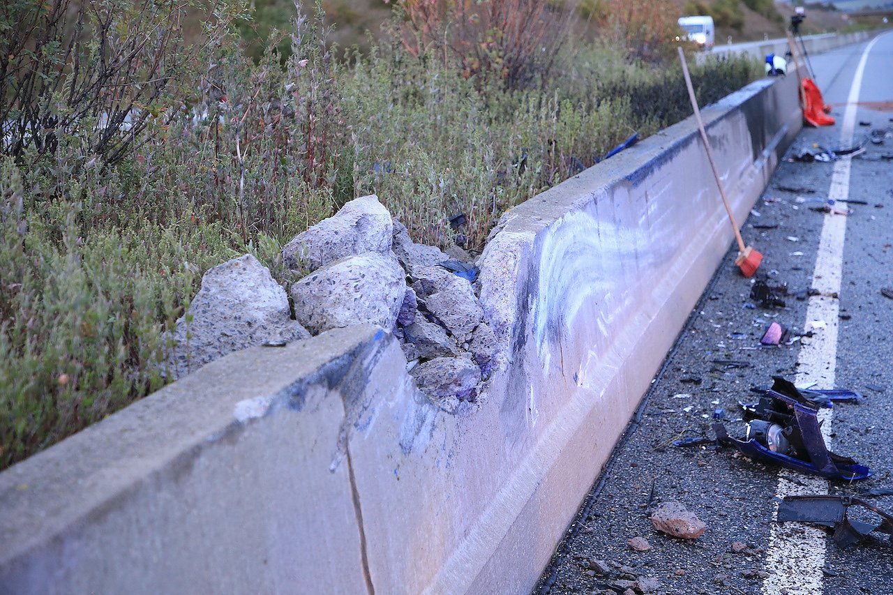 Der 25-jährige polnische Fahrer kam aus bisher ungeklärter Ursache nach rechts von der Autobahn ab und prallte an einen Wasserdurchlass. Dabei riss er sich das rechte Vorderrad ab. Das Fahrzeug rutschte im weiteren Verlauf über die Autobahn, prallte in eine Gleitschutzwand aus Beton und stürzte dann auf die Seite. Betontrümmer schleuderten auf die Gegenfahrbahn und beschädigten dort einen vorbeifahrenden Transporter.