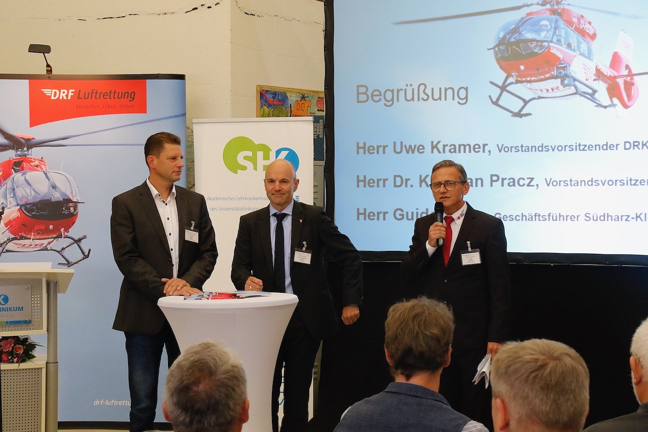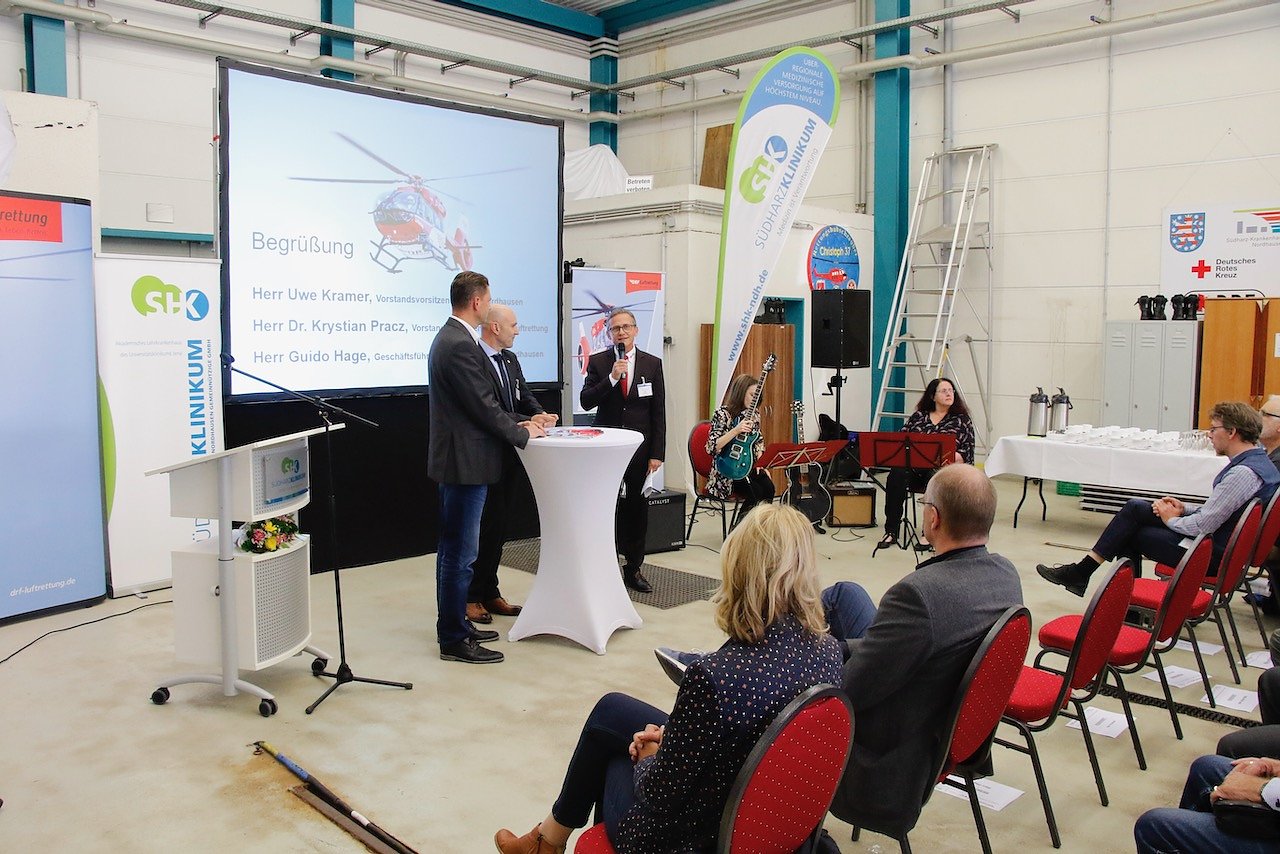 Mit Stolz blicken auch Krankenhaus und Landkreis auf ihre Luftretter. Die Einsatzzahlen zeigten, das dass Land damals den richtigen Standort gewählt habe, meinte Landrat Jendricke. Die Präsenz der Flieger und des großen Krankenhauses habe schließlich auch dazu geführt, dass die zentrale Leitstelle für den Thüringer Norden in Nordhausen zu finden ist. Das rauschen der Rotorblätter des Hubschraubers über der Region bedeute für die Leute vor Ort auch ein Stück Sicherheit in der Gewissheit, dass im Notfall schnell Hilfe kommt, ergänzte Krankenhaus-Chef Guido Hage.