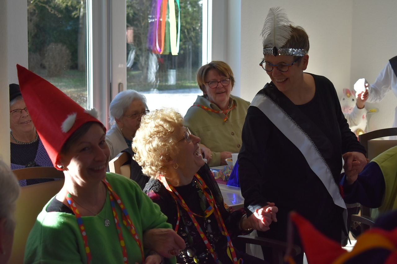 Die Tagespflege St. Johannis hat für ihre Besucher und deren Angehörige eine Faschingsfeier mit Programm organisiert. Die Hofdamen des Krimderöder Karnevals KKC sorgten mit ihrer Aufführung wieder für eine ausgelassene Stimmung. Es wurde herzhaft gelacht, geschunkelt und mitgesungen.