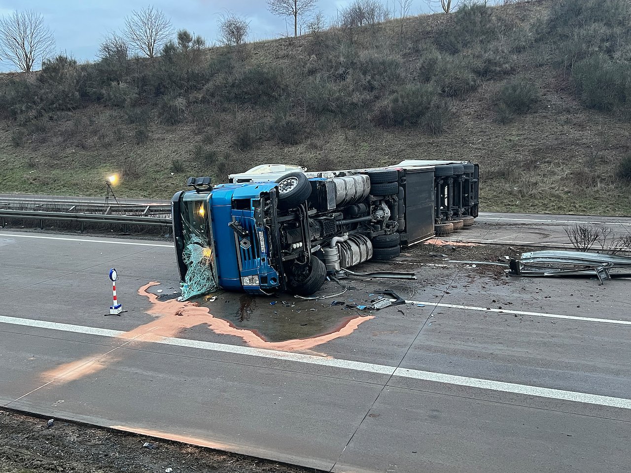 Lkw mit 22 Tonnen Rapsöl blockiert gesamte Autobahn